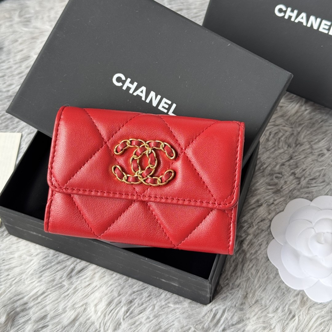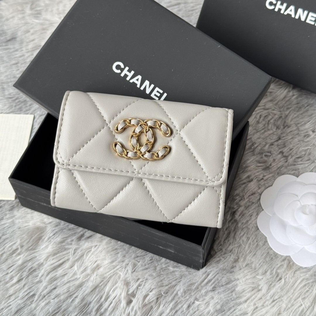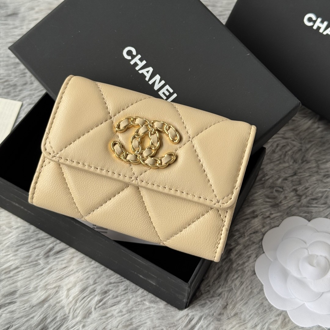 • 샤넬 19 램스킨 똑딱이 카드지갑