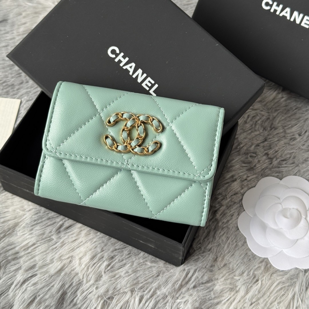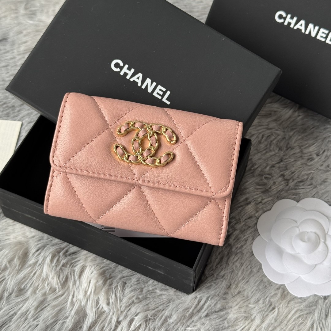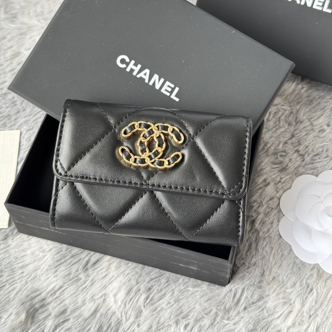 • 샤넬 19 램스킨 똑딱이 카드지갑