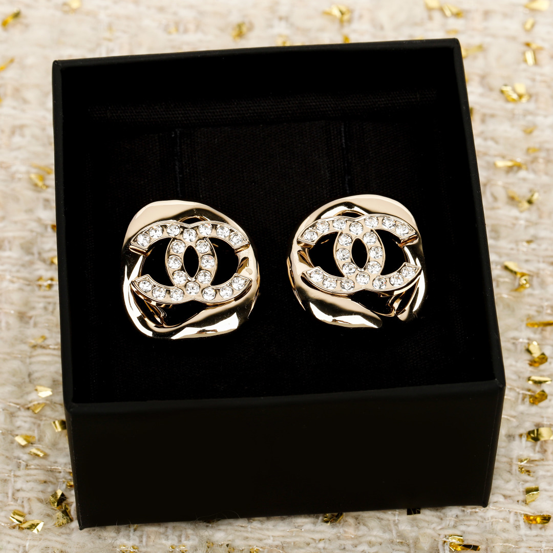 • 샤넬 CC 크리스탈 스마일 커브 귀걸이