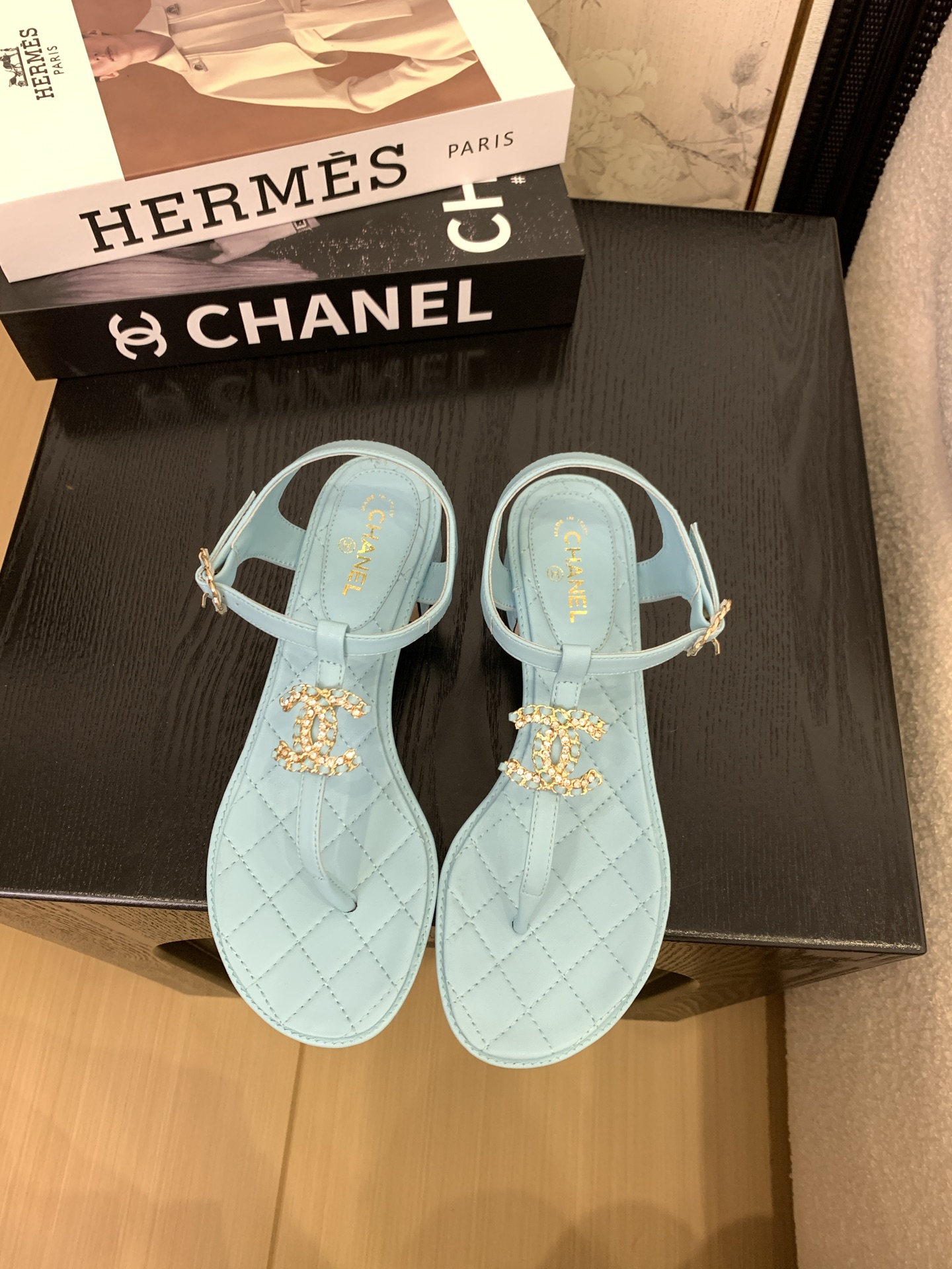 샤넬 퀄팅 CC로고 쪼리 샌들