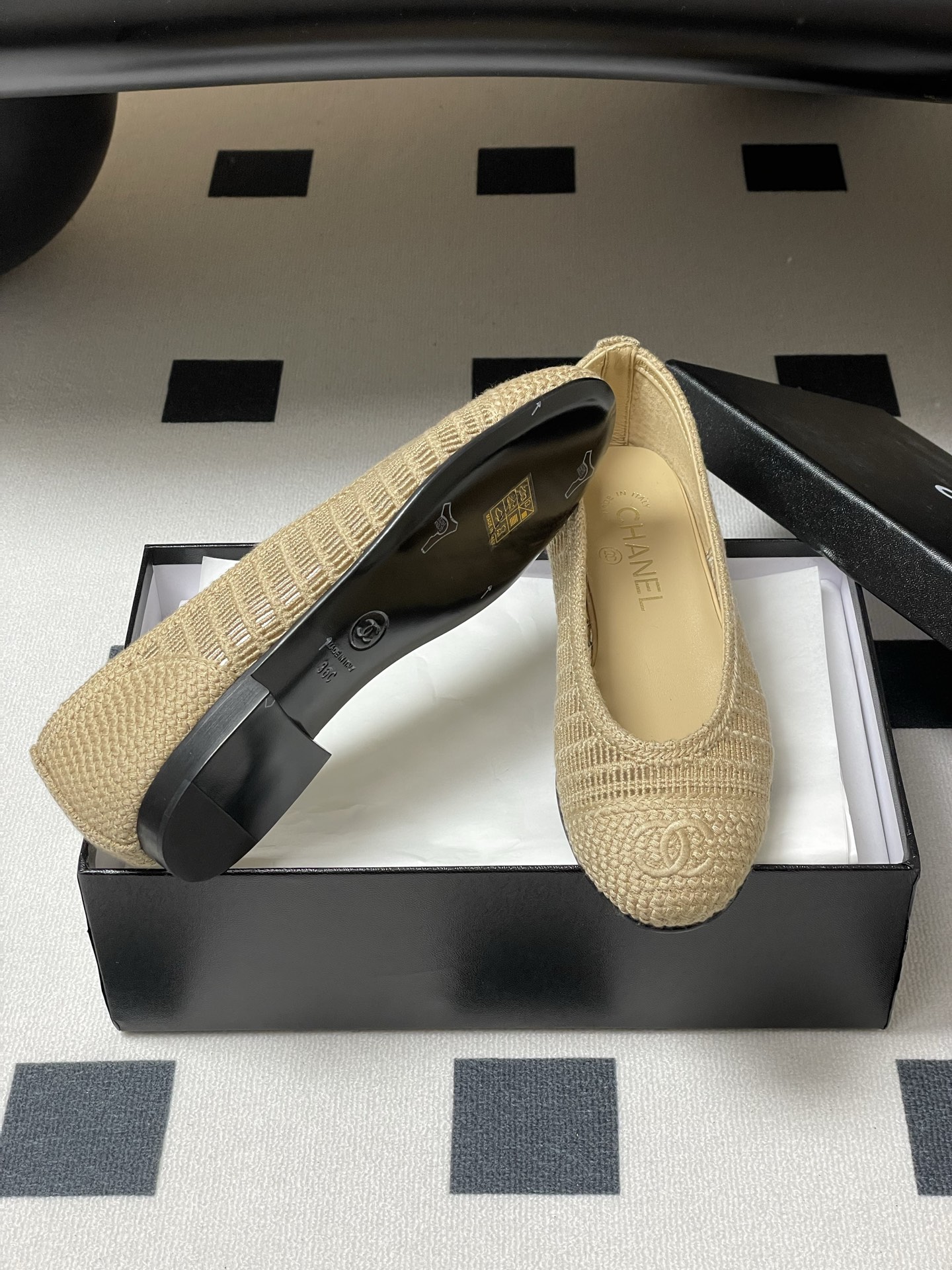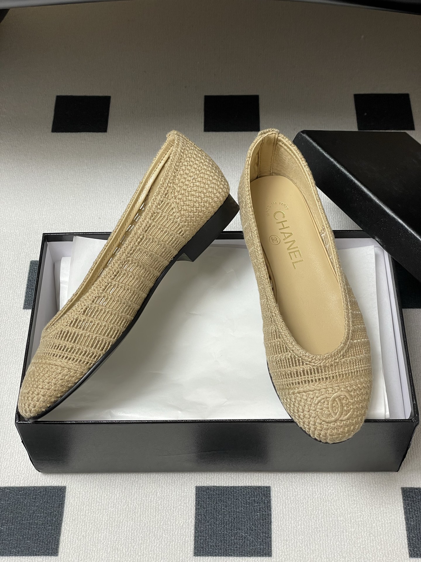 샤넬 라피아 플랫