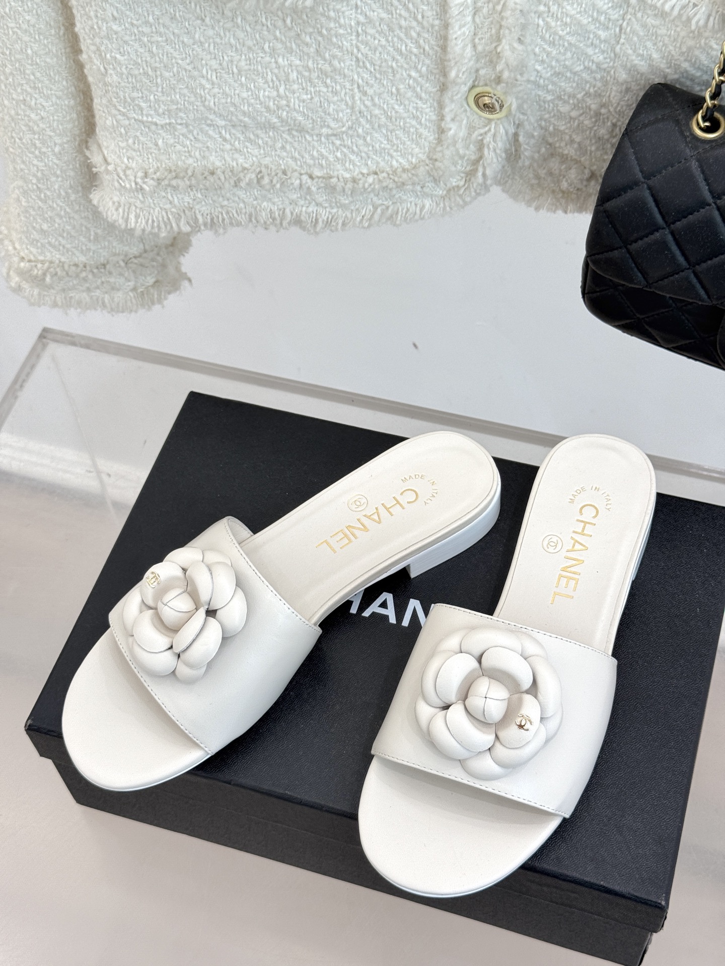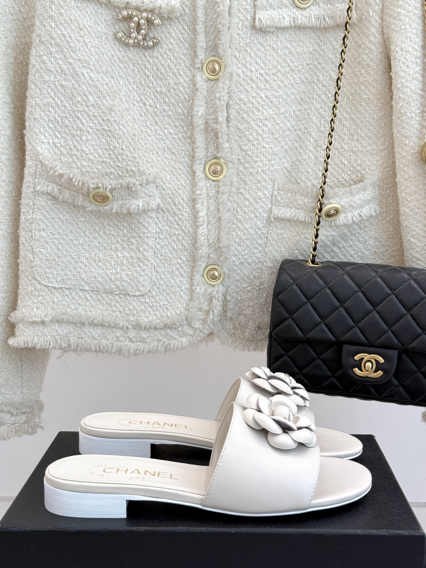 샤넬 까멜리아 뮬 슬리퍼