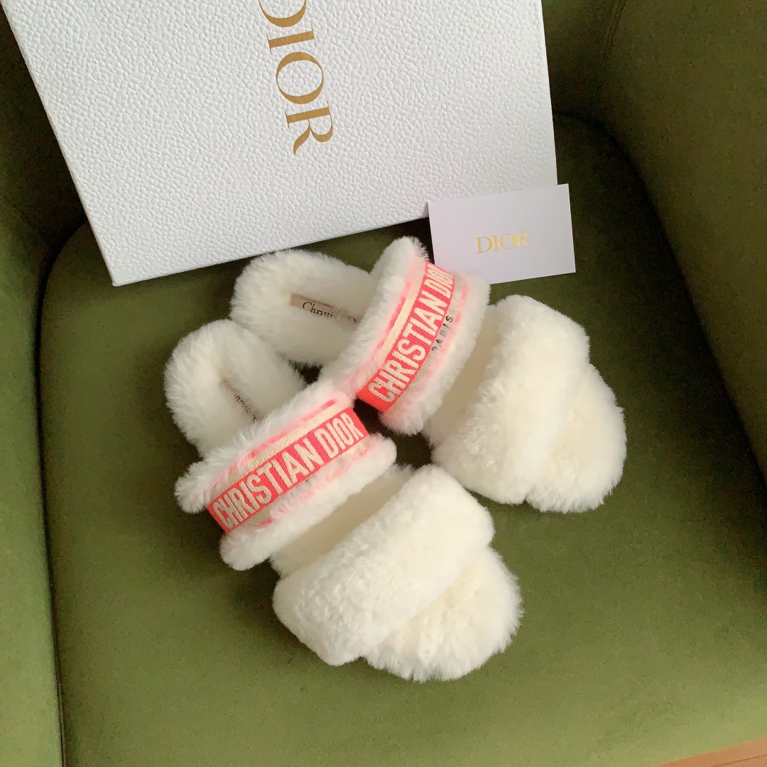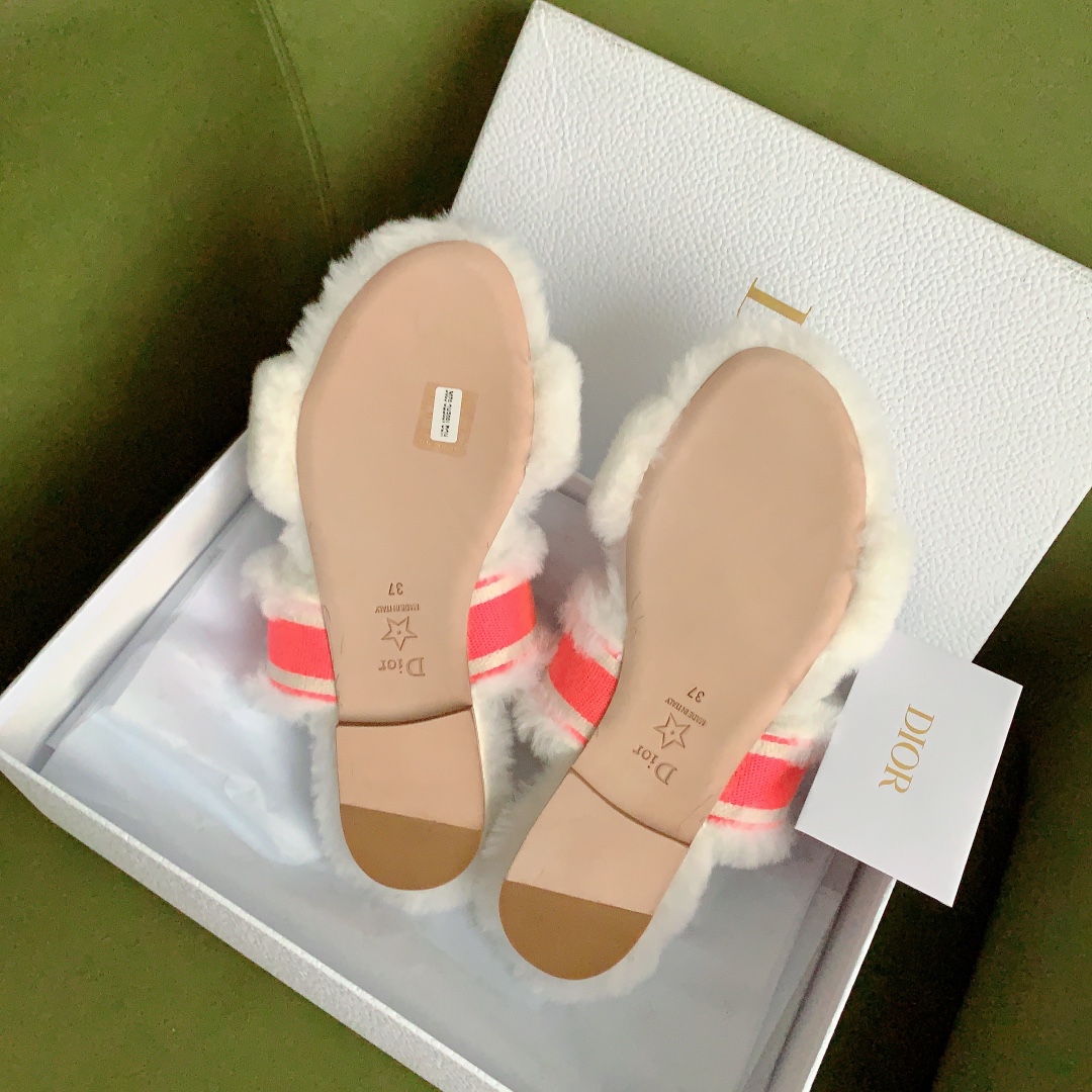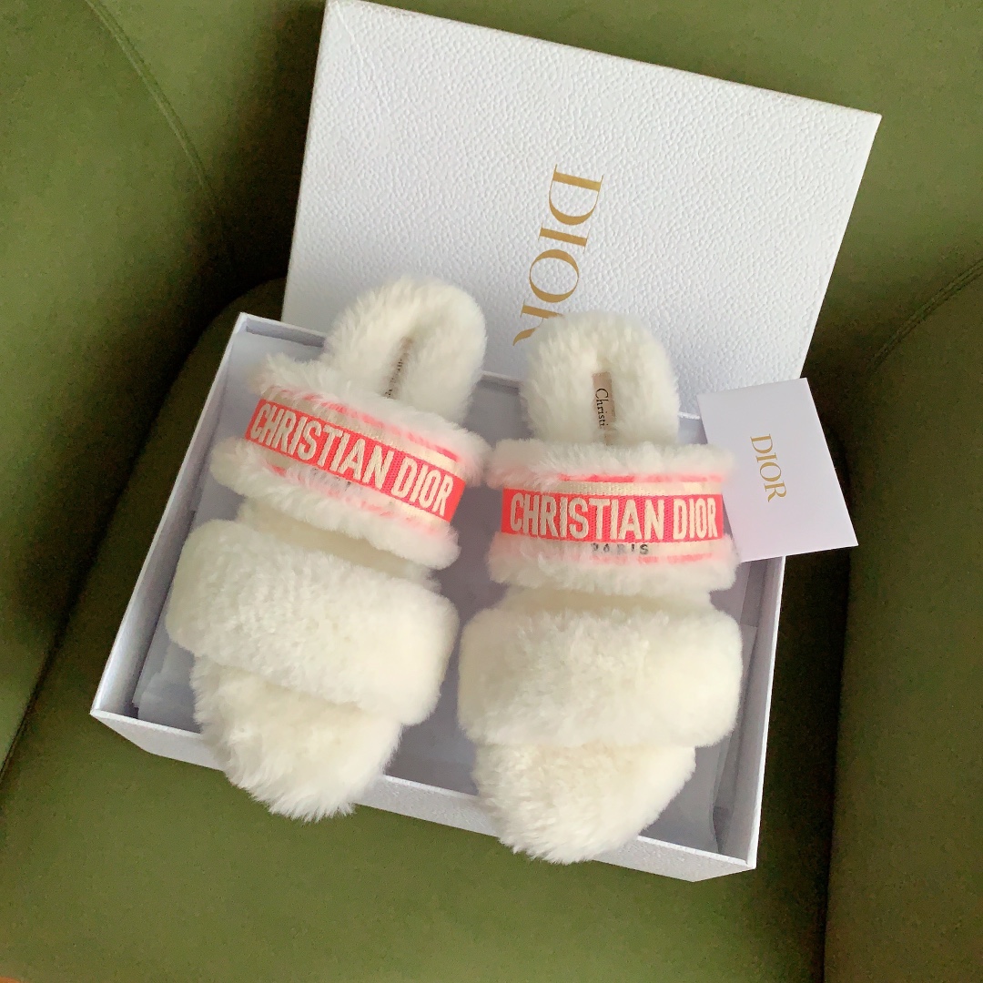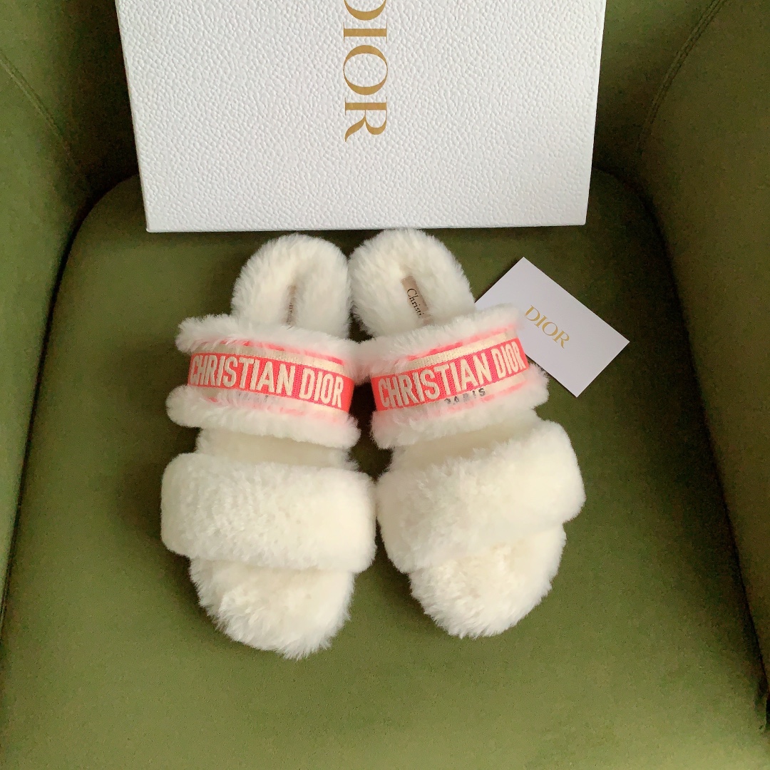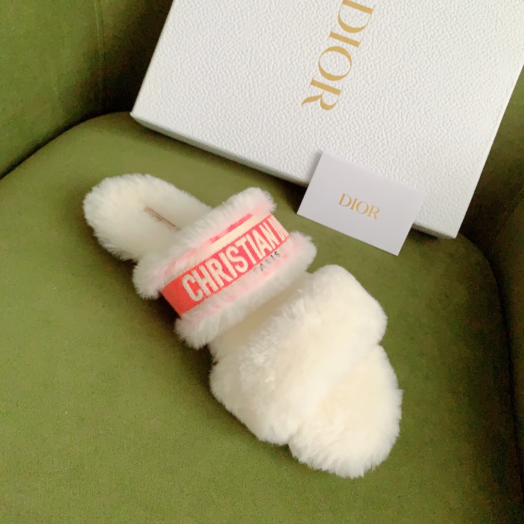 디올 시어링 푸시아 로고 뮬 슬리퍼