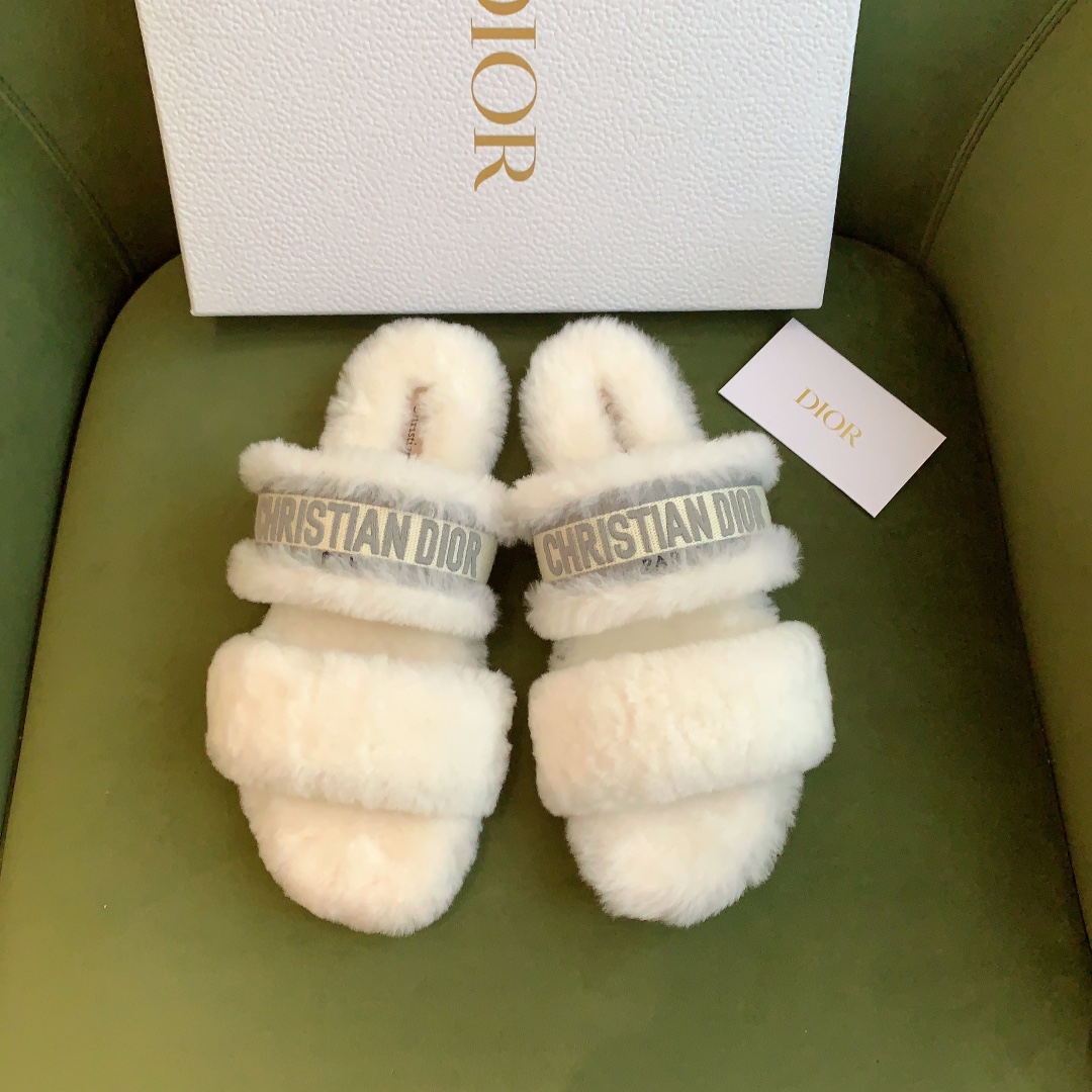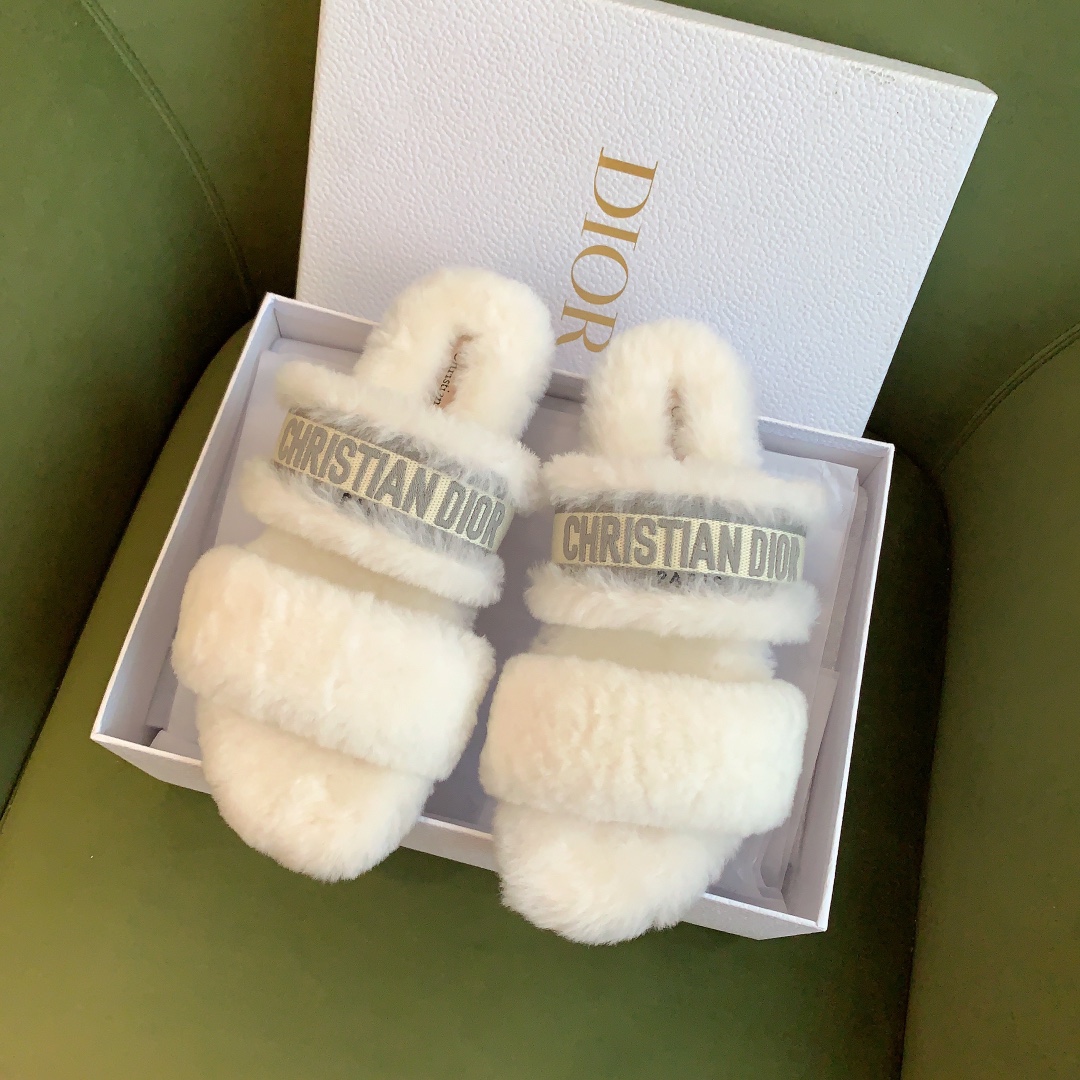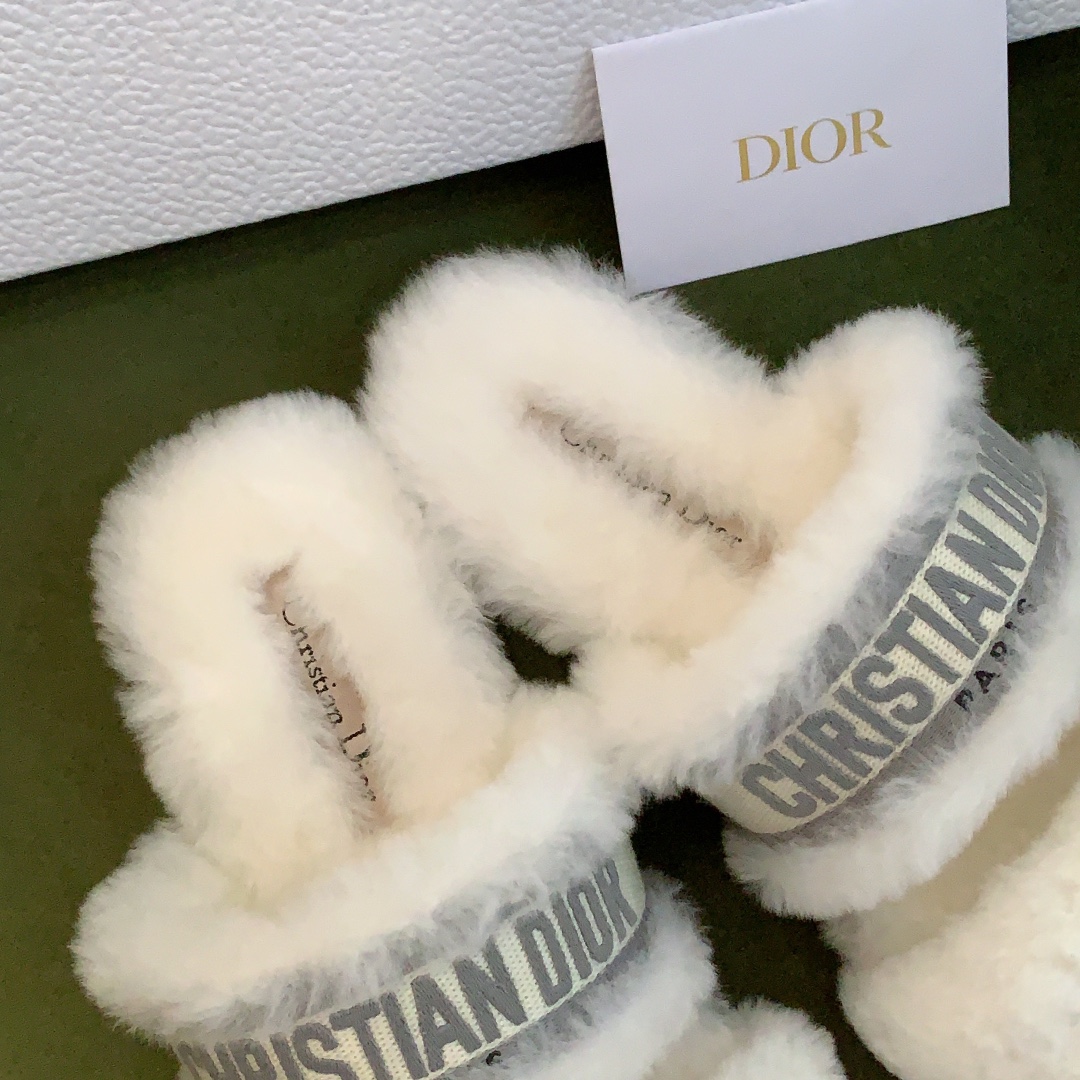 디올 시어링 푸시아 로고 뮬 슬리퍼