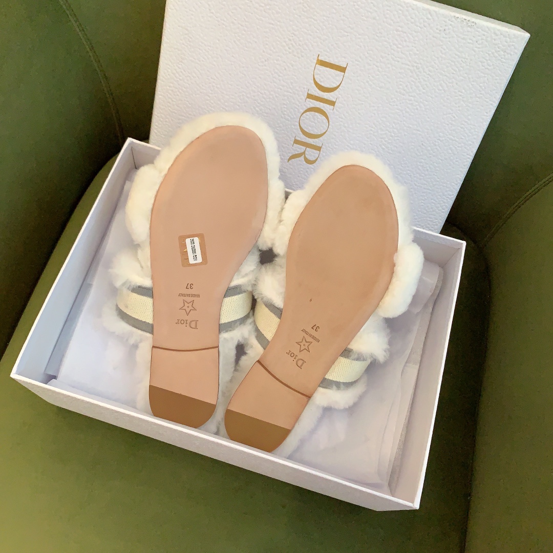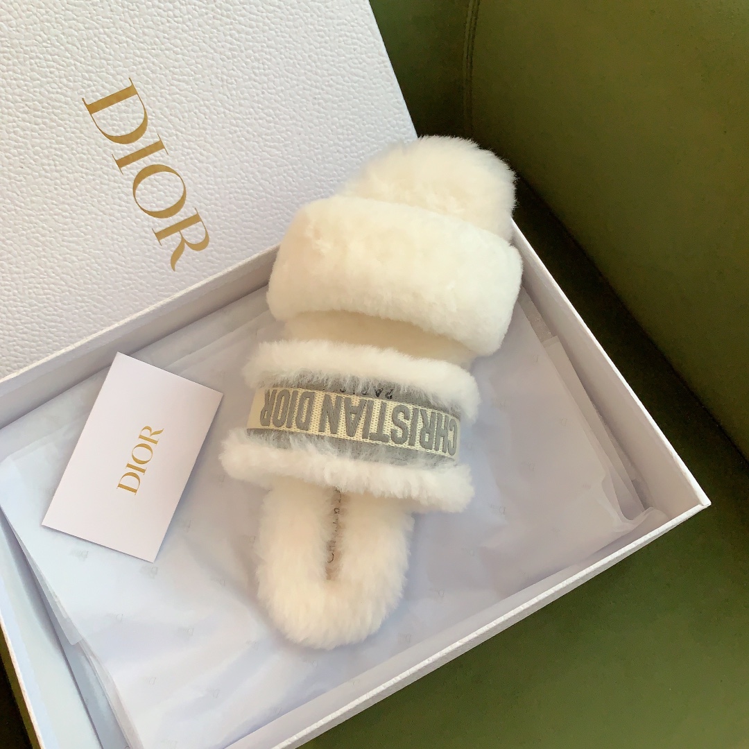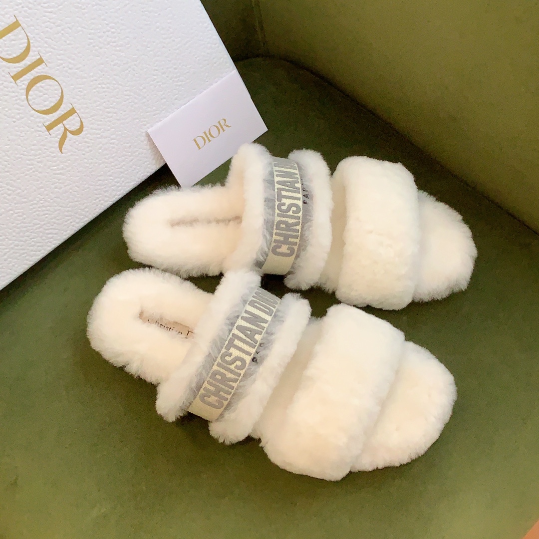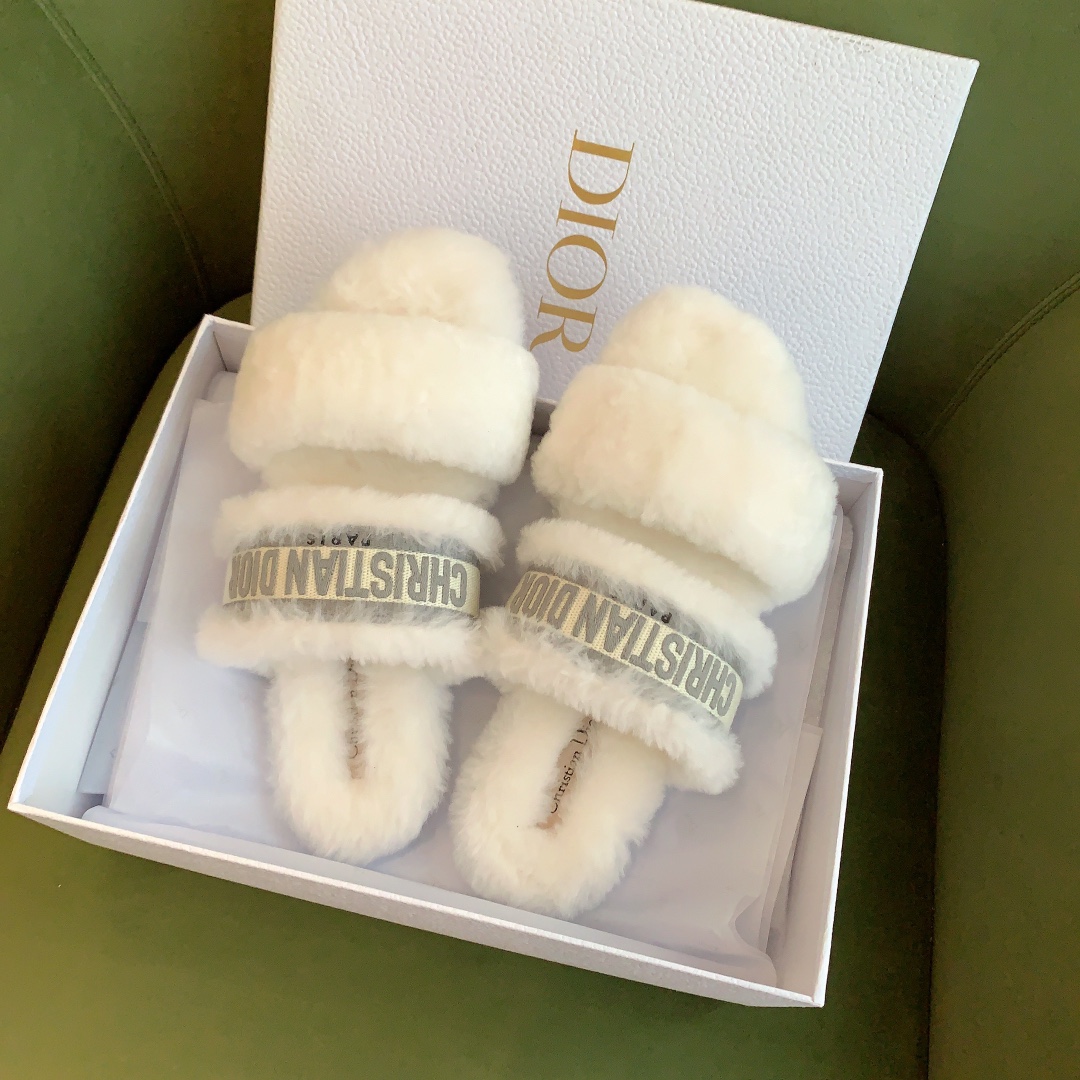 디올 시어링 푸시아 로고 뮬 슬리퍼