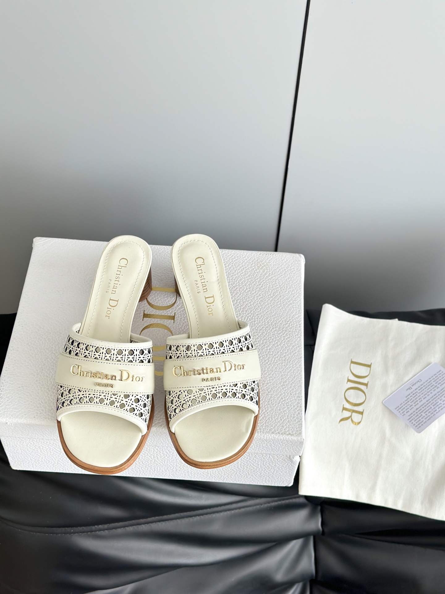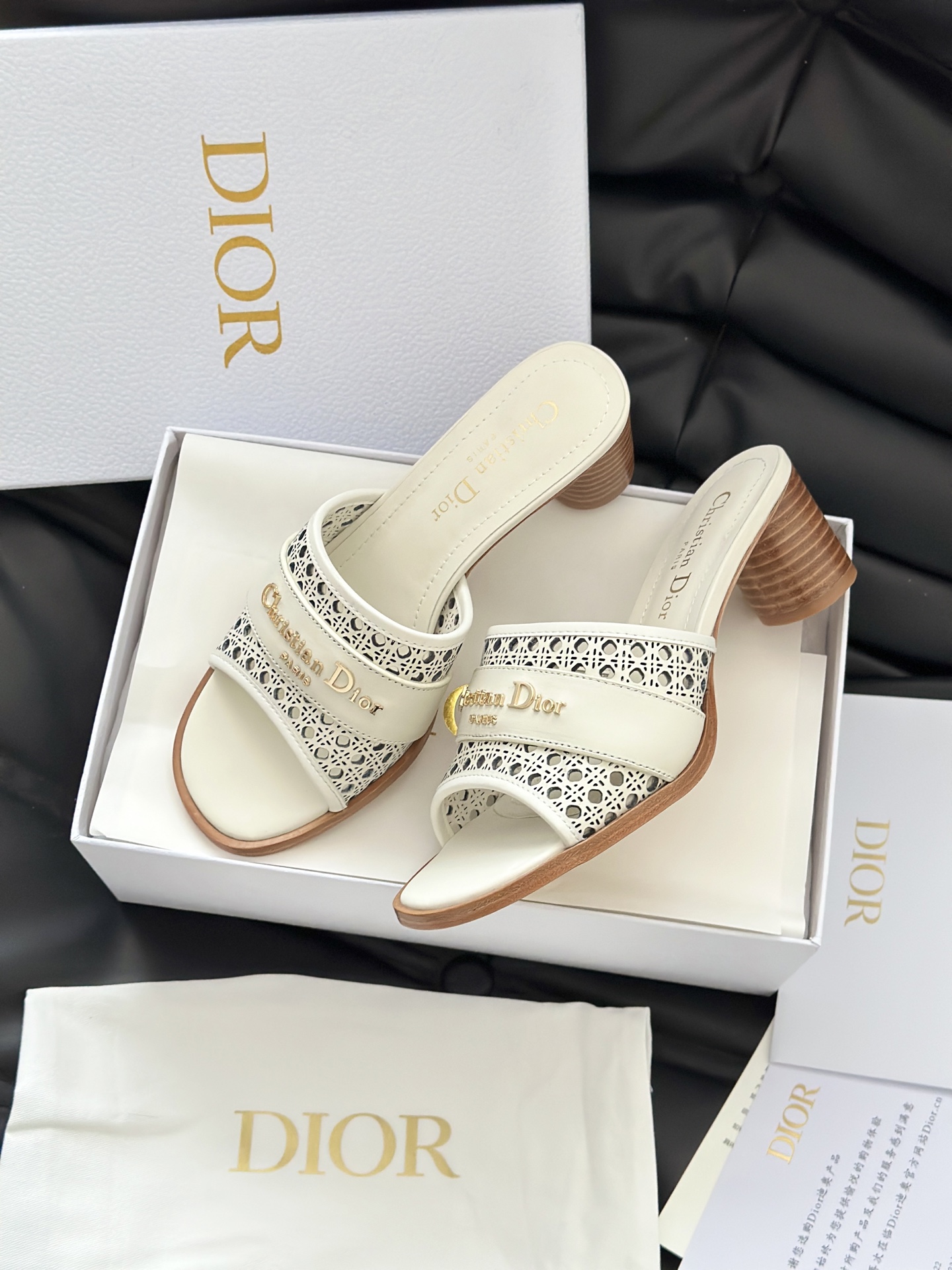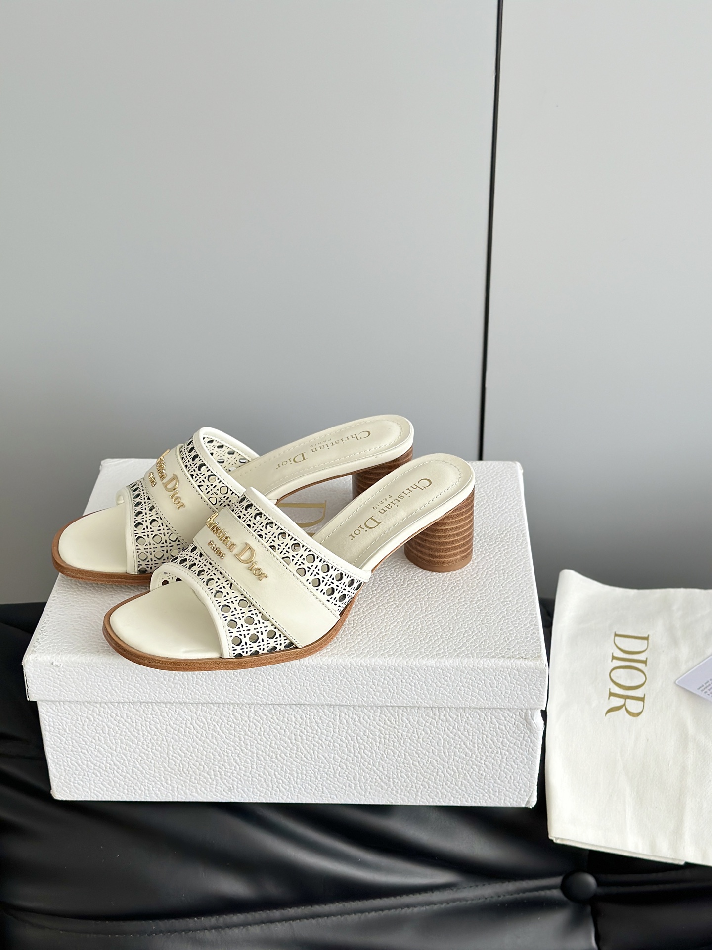 디올 D-Lane 오픈워크 마이크로까나쥬 뮬 힐