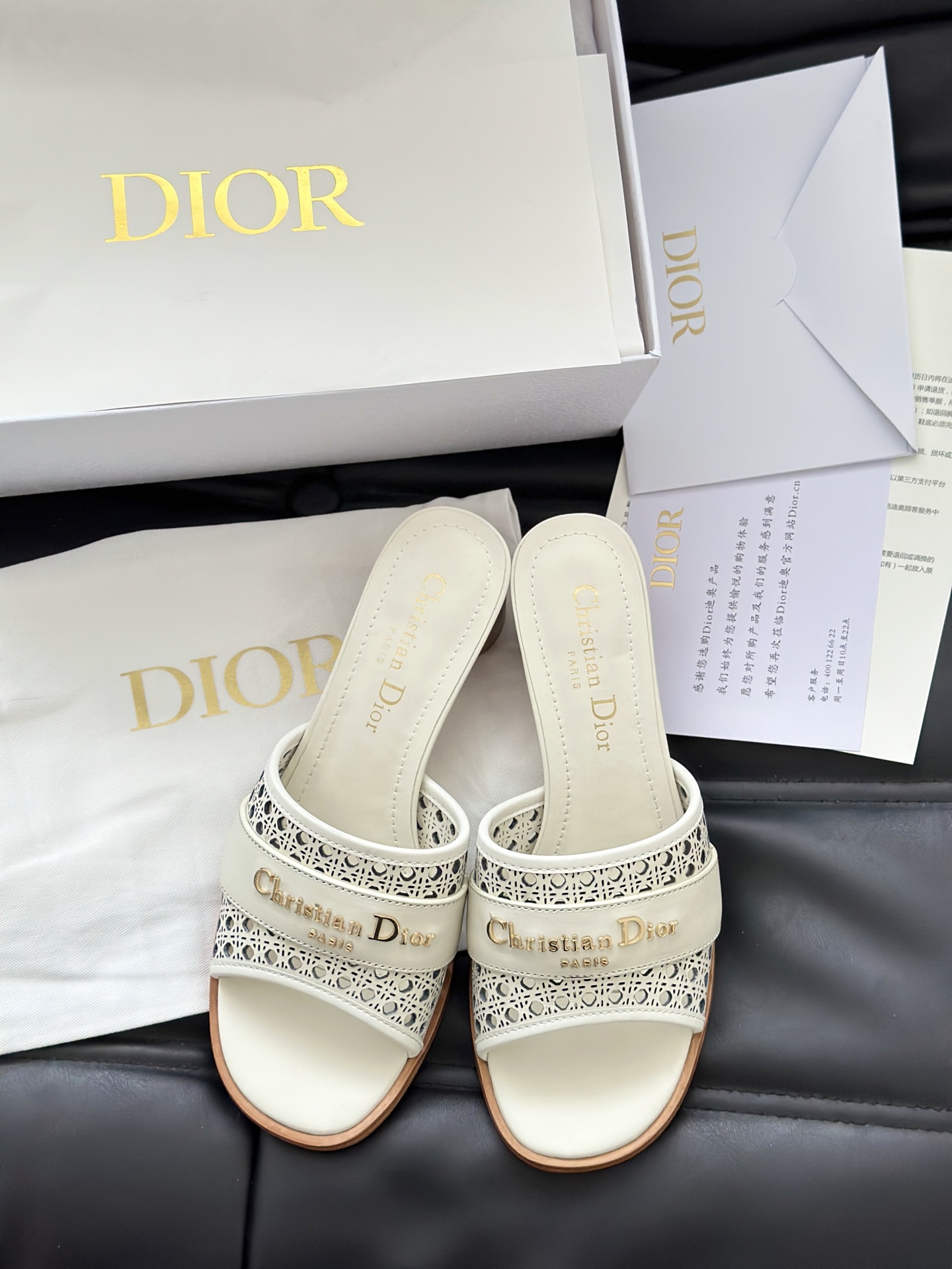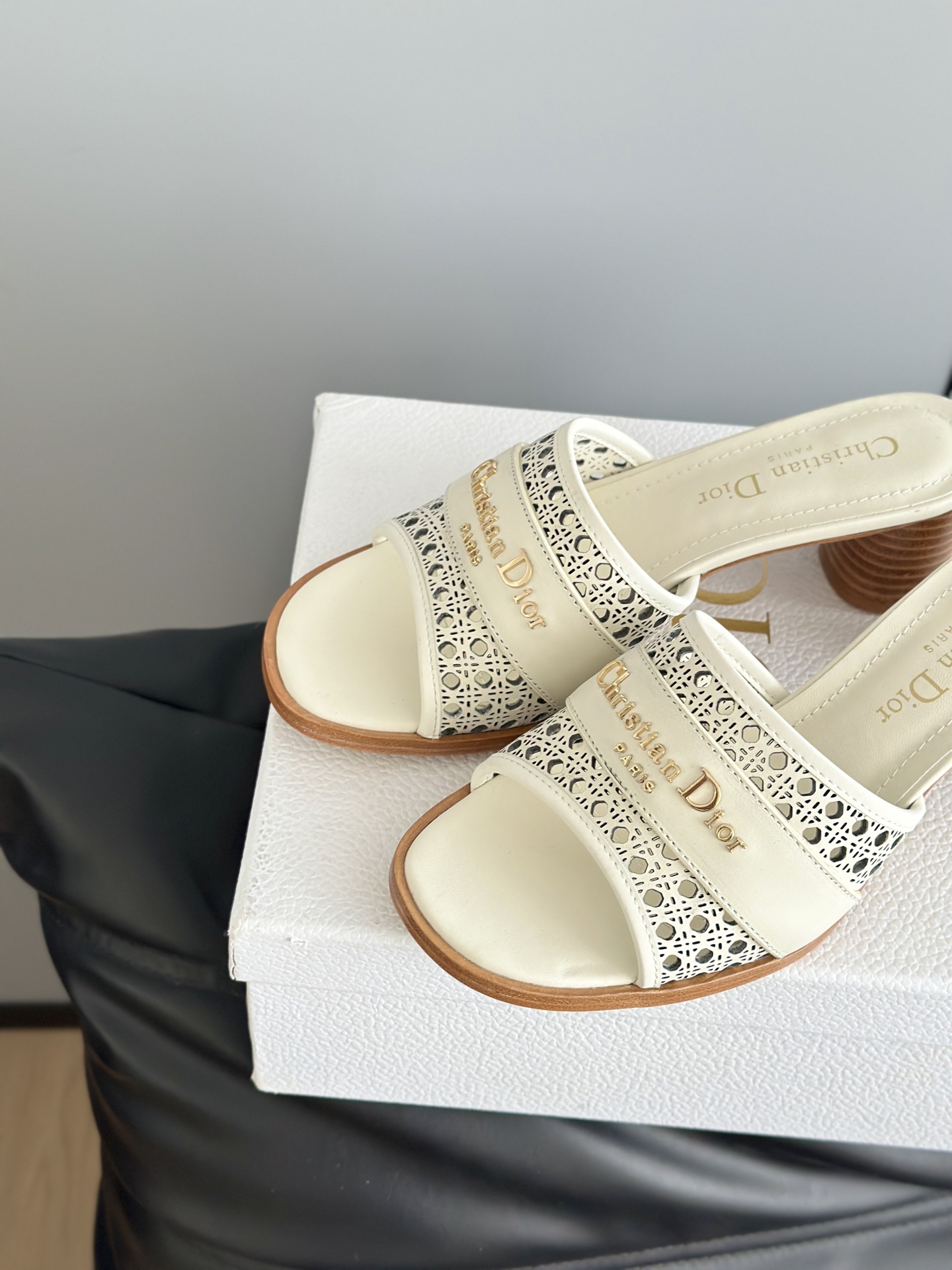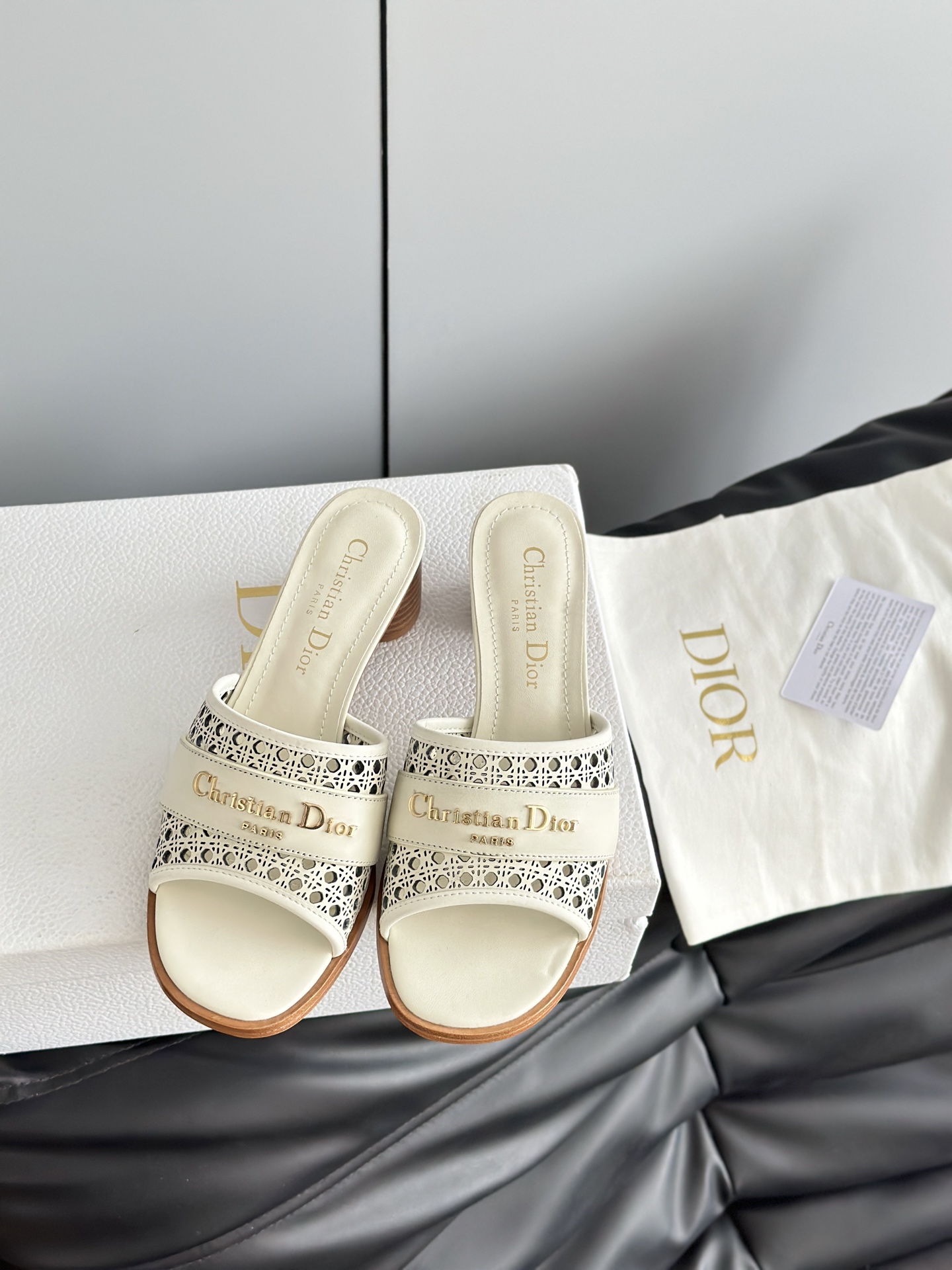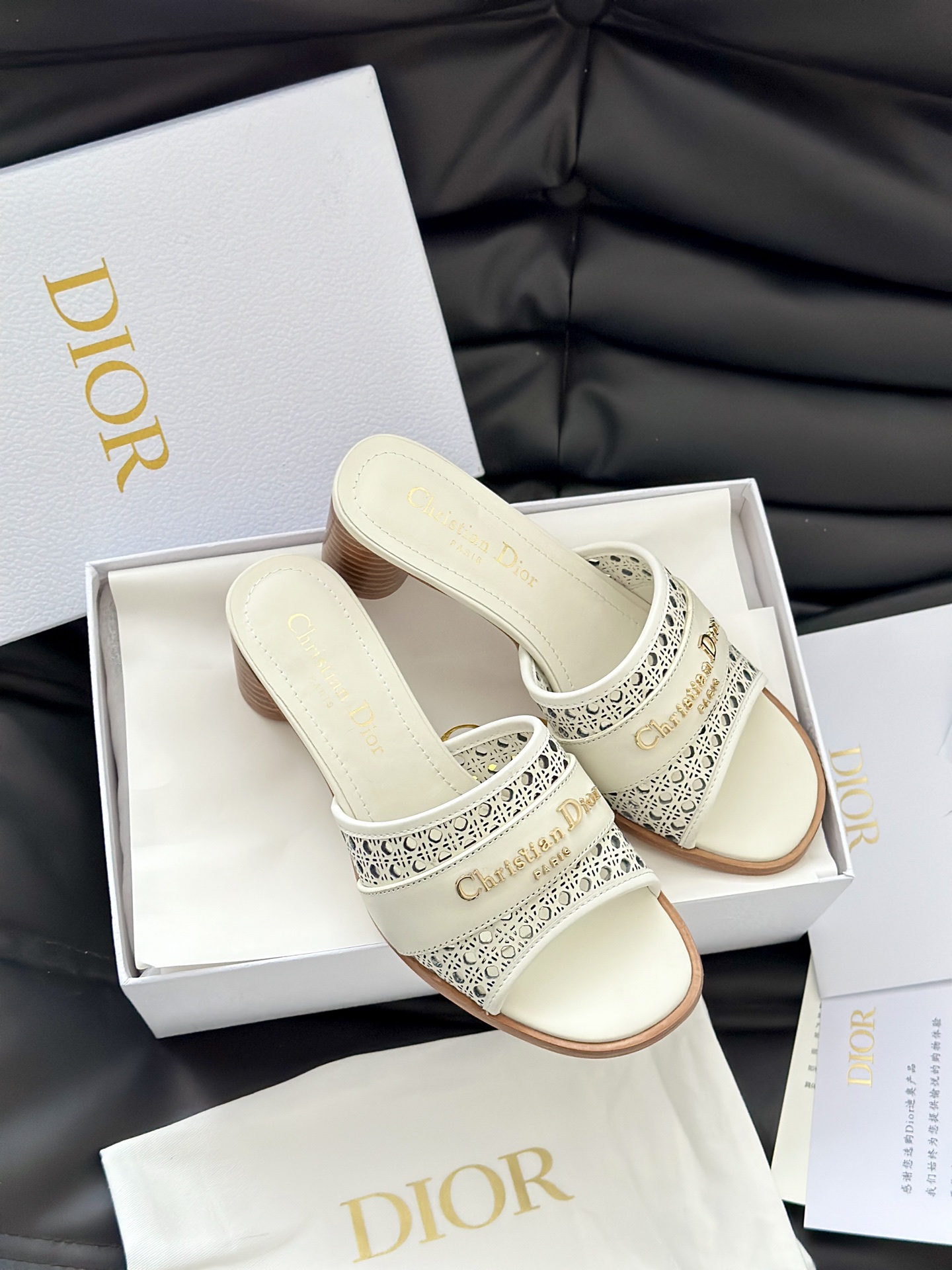 디올 D-Lane 오픈워크 마이크로까나쥬 뮬 힐