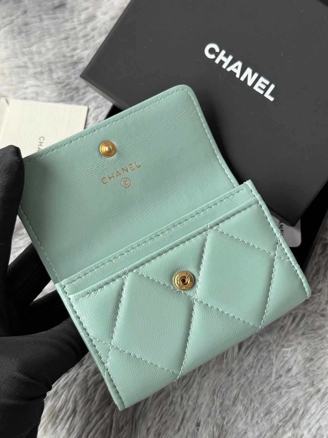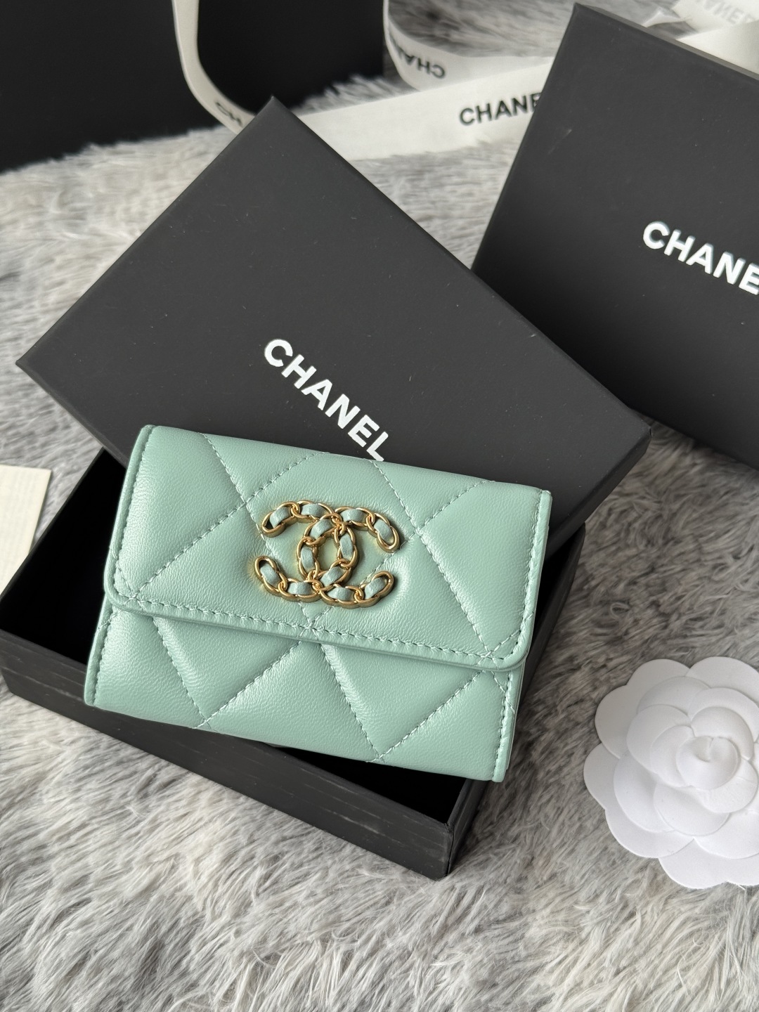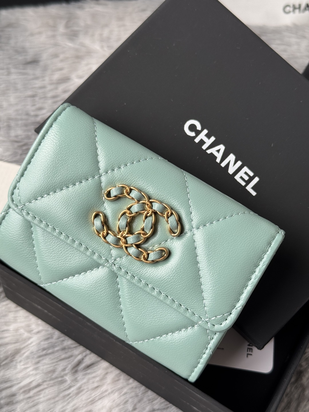 샤넬 19 램스킨 똑딱이 카드지갑