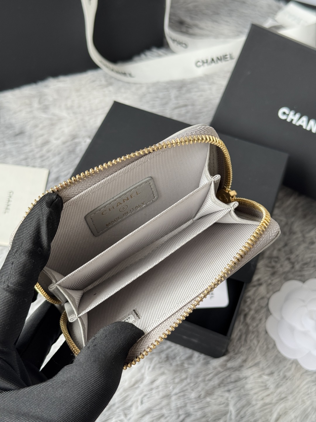 샤넬 19 지퍼 램스킨 카드 지갑