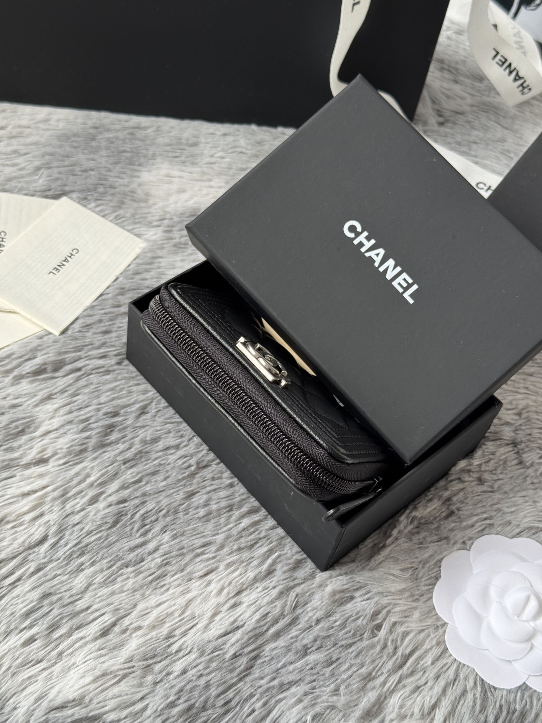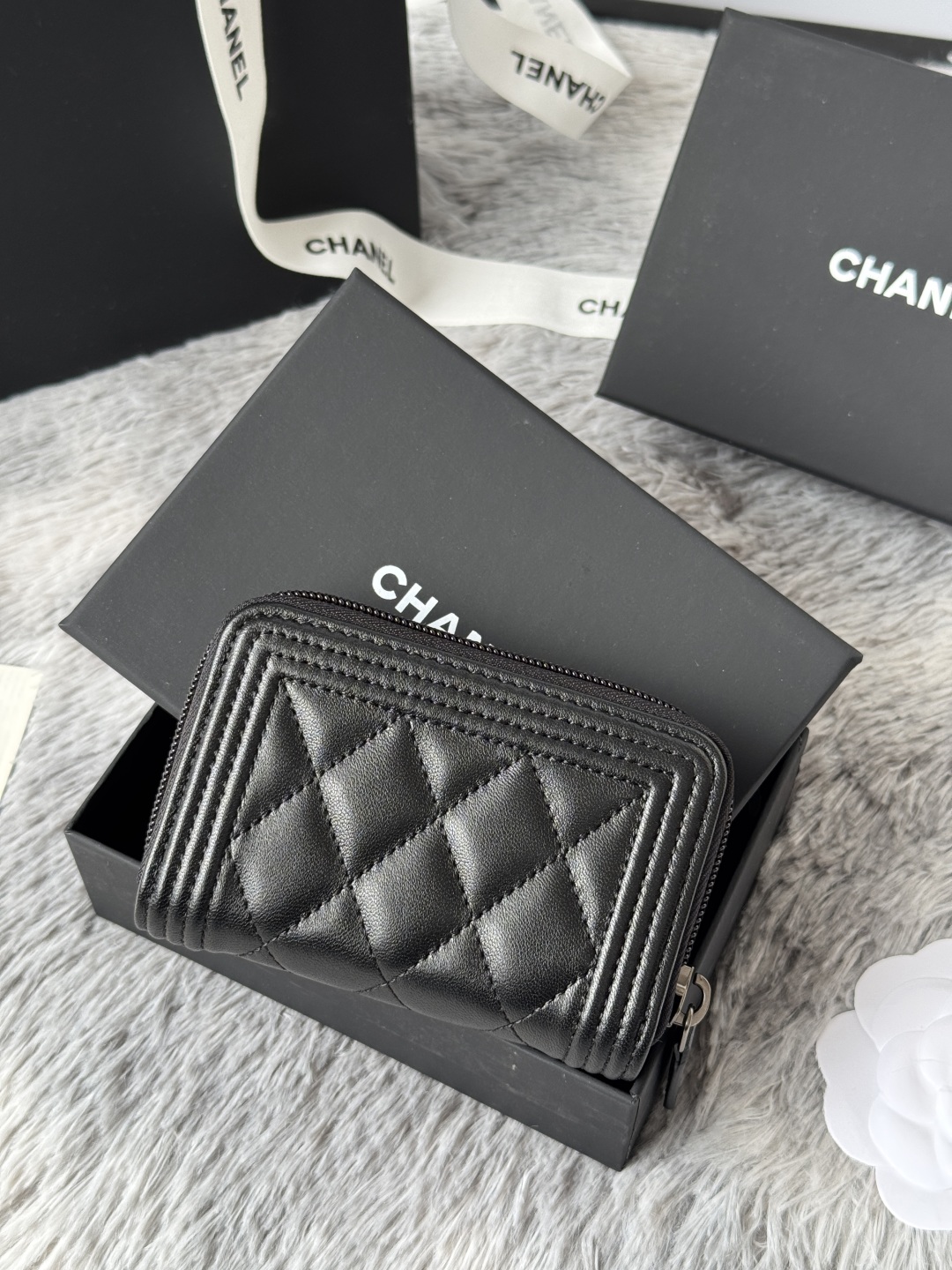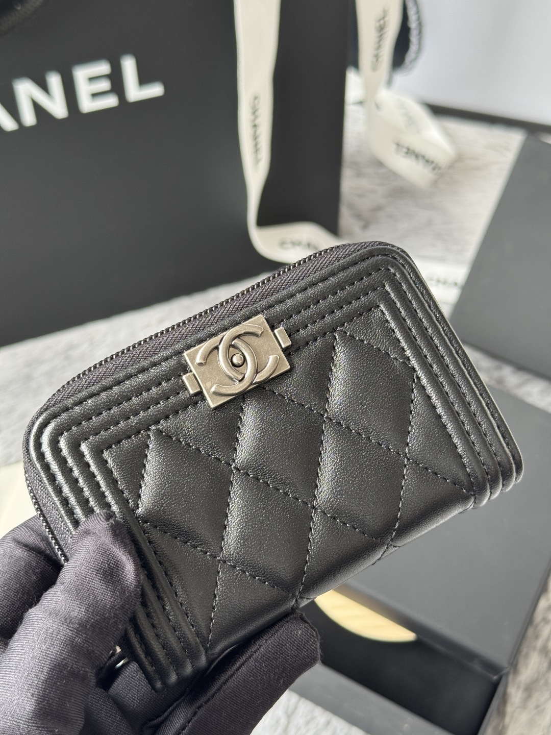 샤넬 보이 램스킨 지퍼돌이 코인 카드지갑