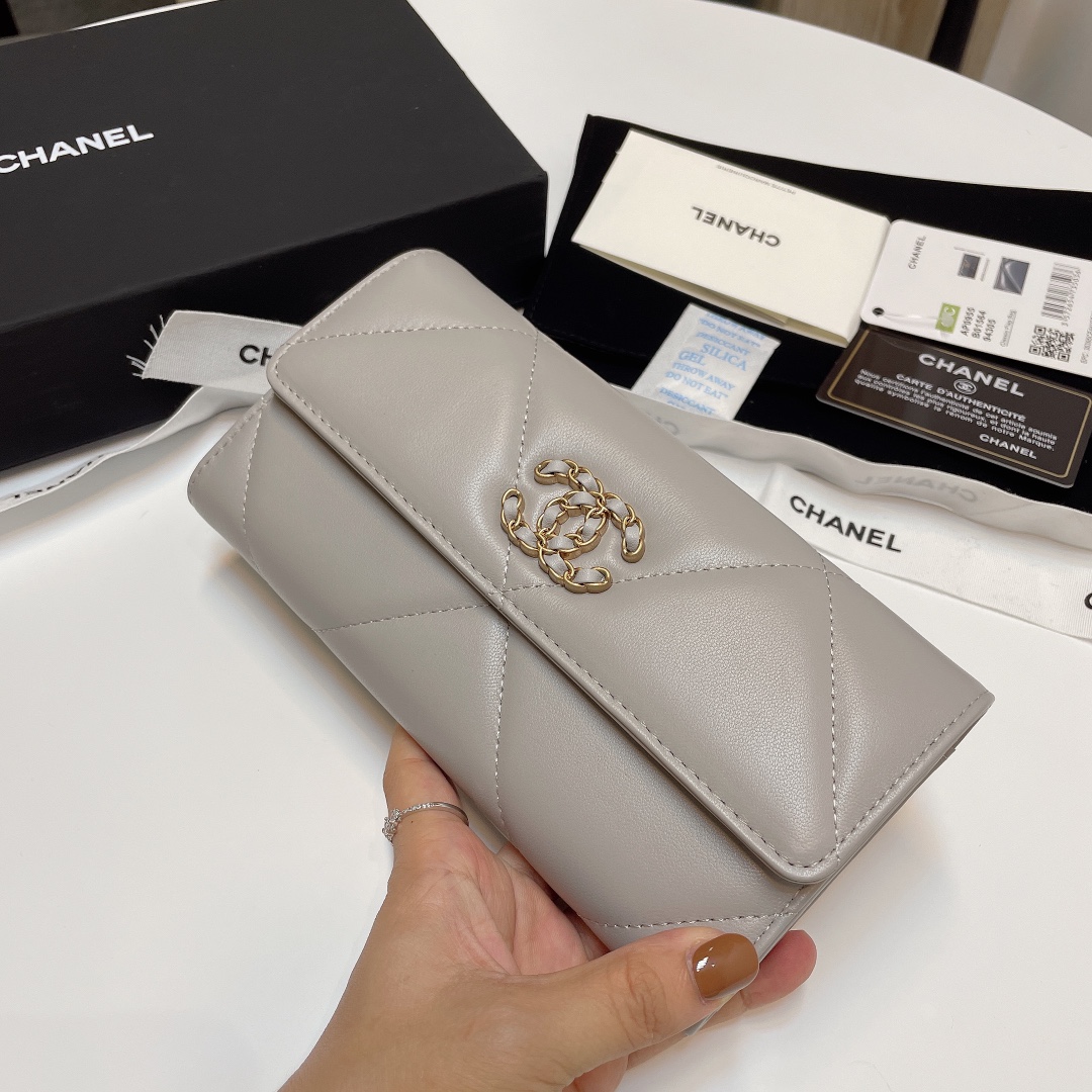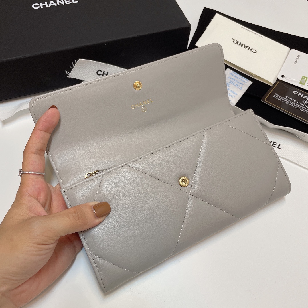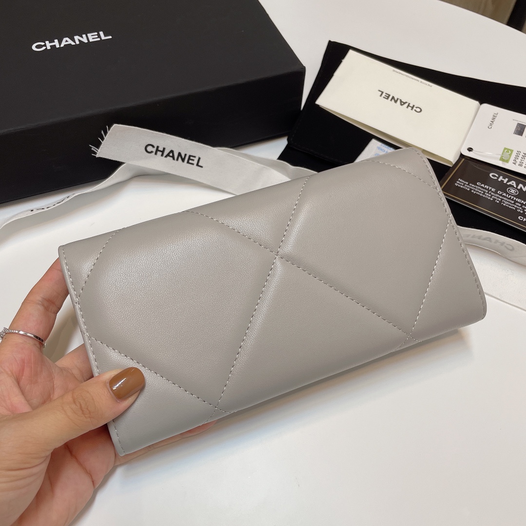 샤넬 19 롱 플랩 램스킨 장지갑