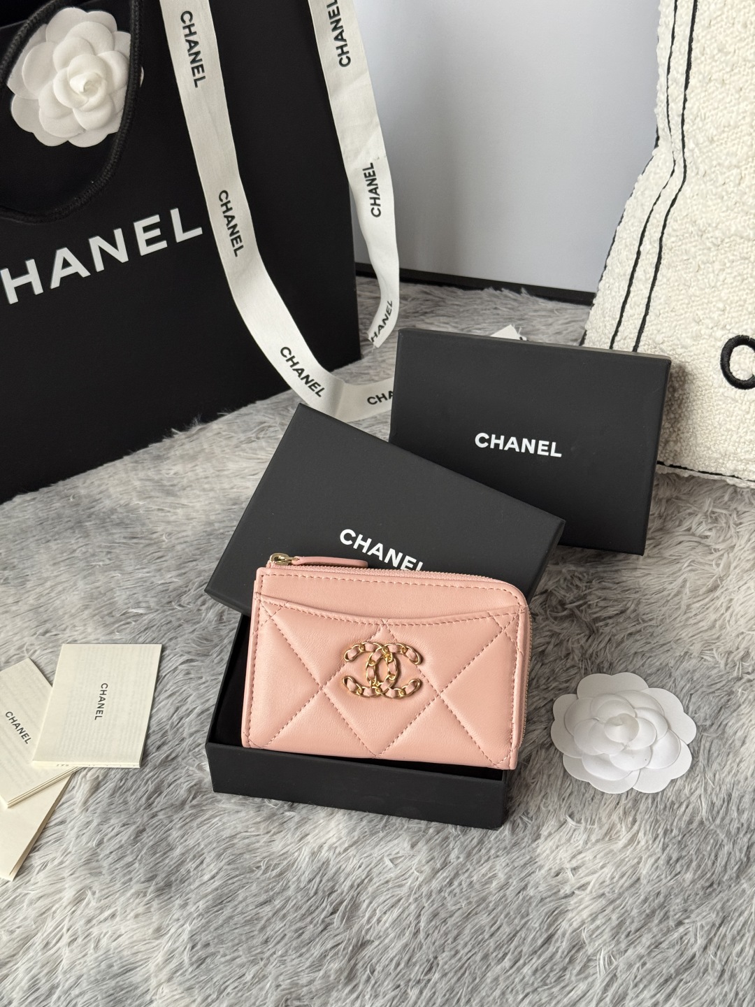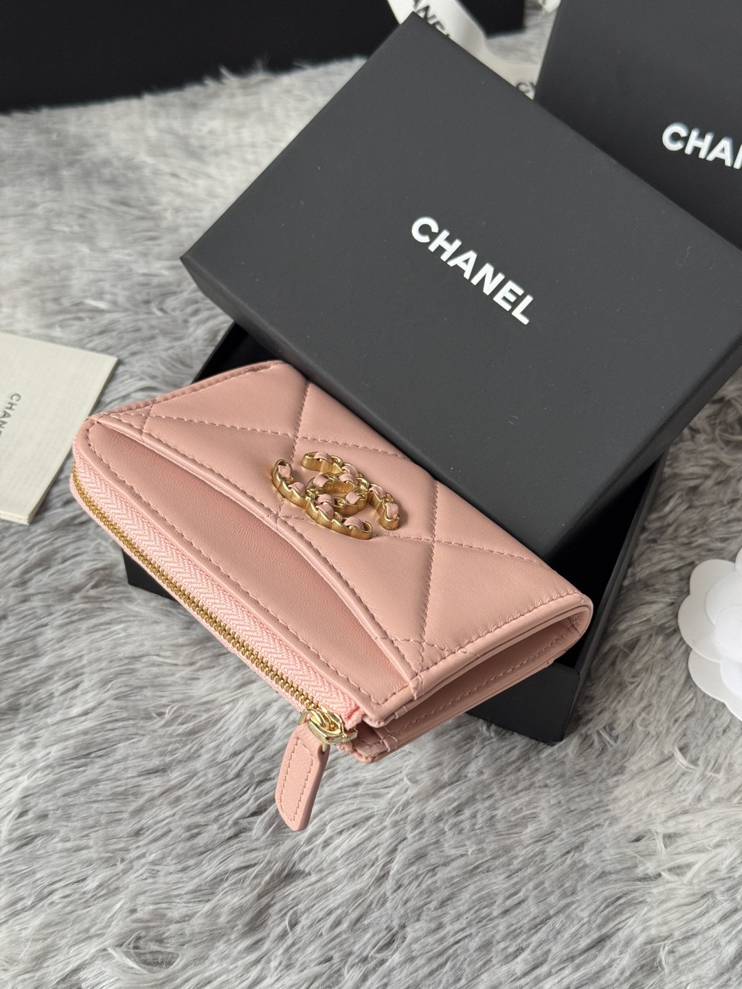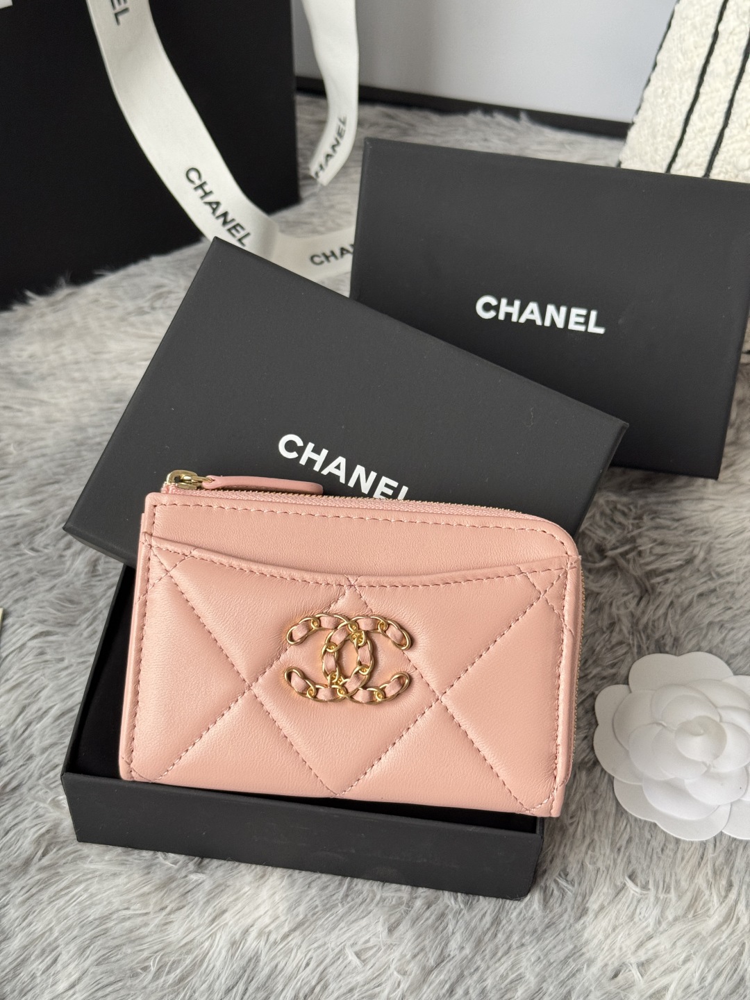 샤넬 19 지퍼 램스킨 카드 홀더