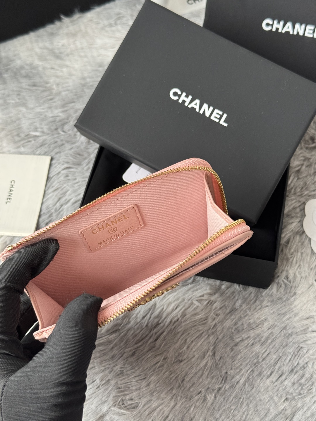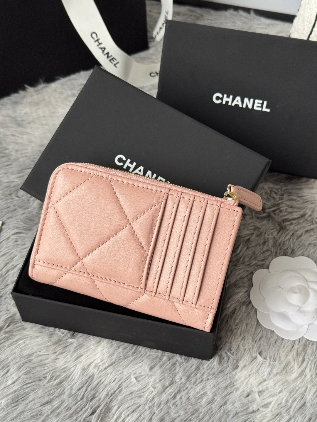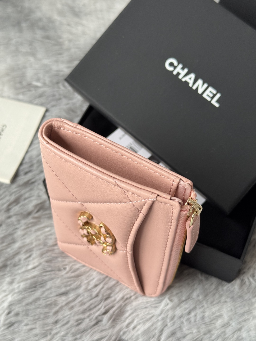 샤넬 19 지퍼 램스킨 카드 홀더