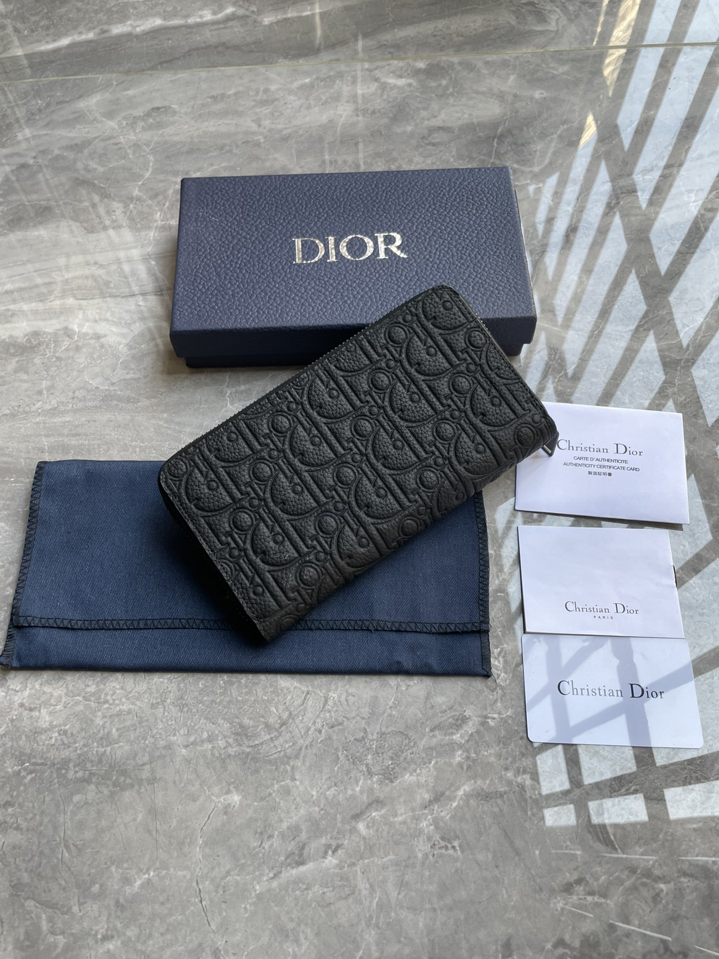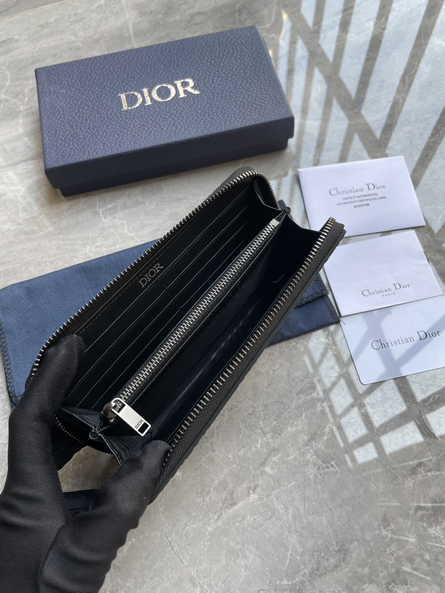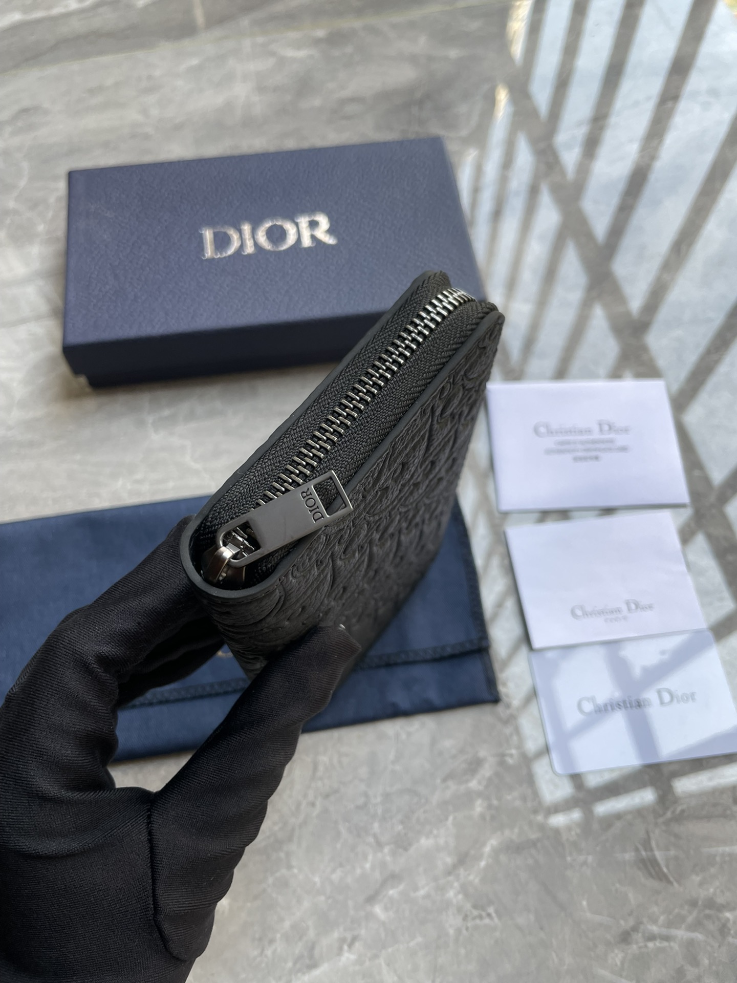 디올 그래비티 가죽 지퍼 장지갑