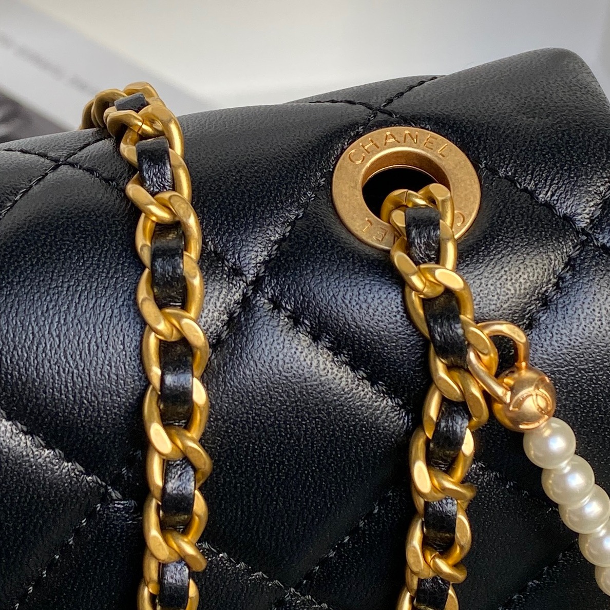 샤넬 CC 로고 진주장식 스몰 플랩백