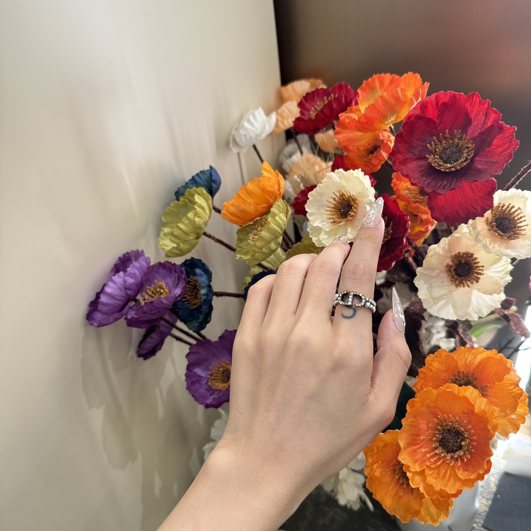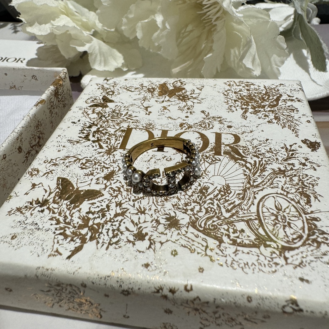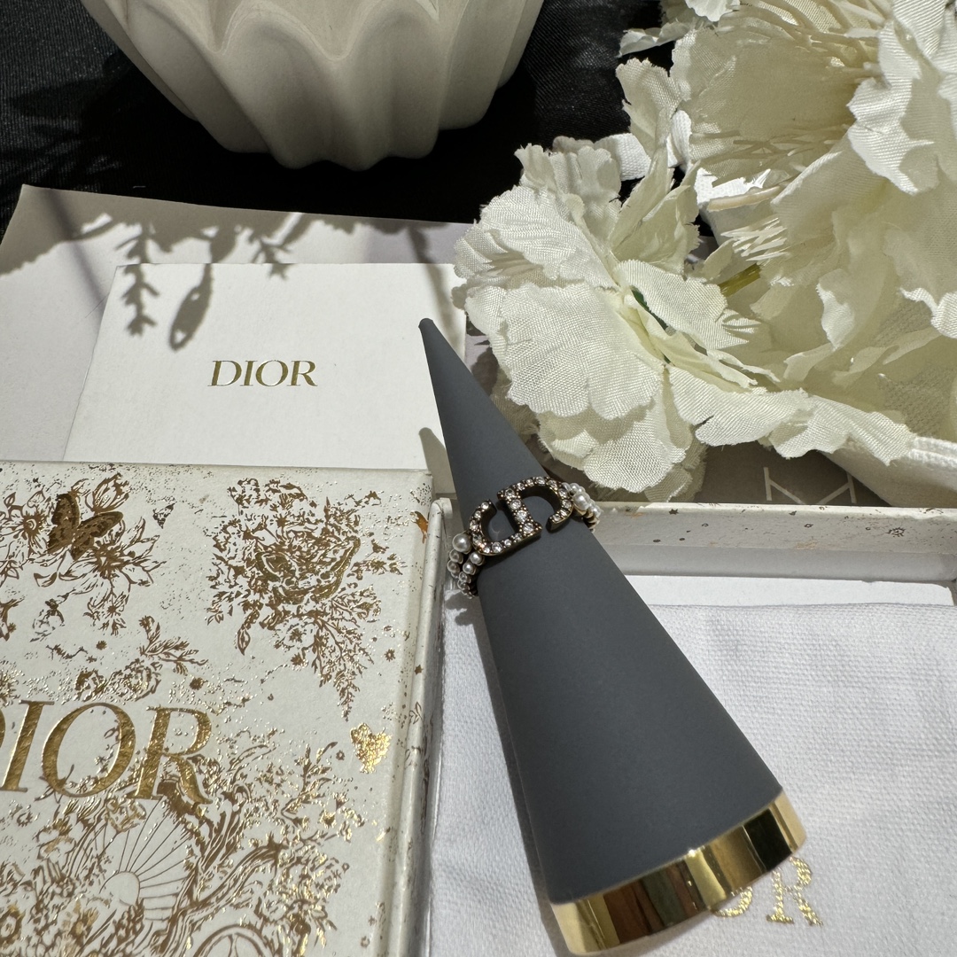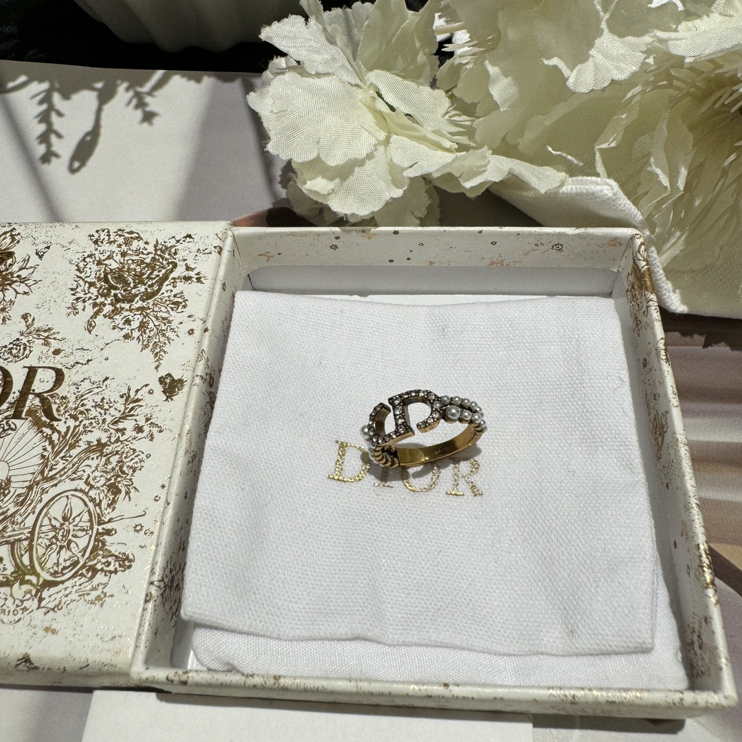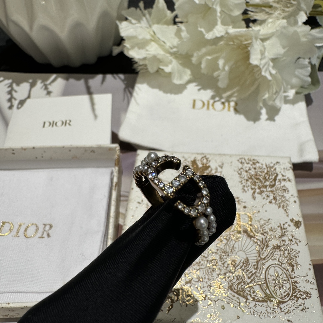 디올 자디오르 브라스 크리스털 & 펄 스태킹 링