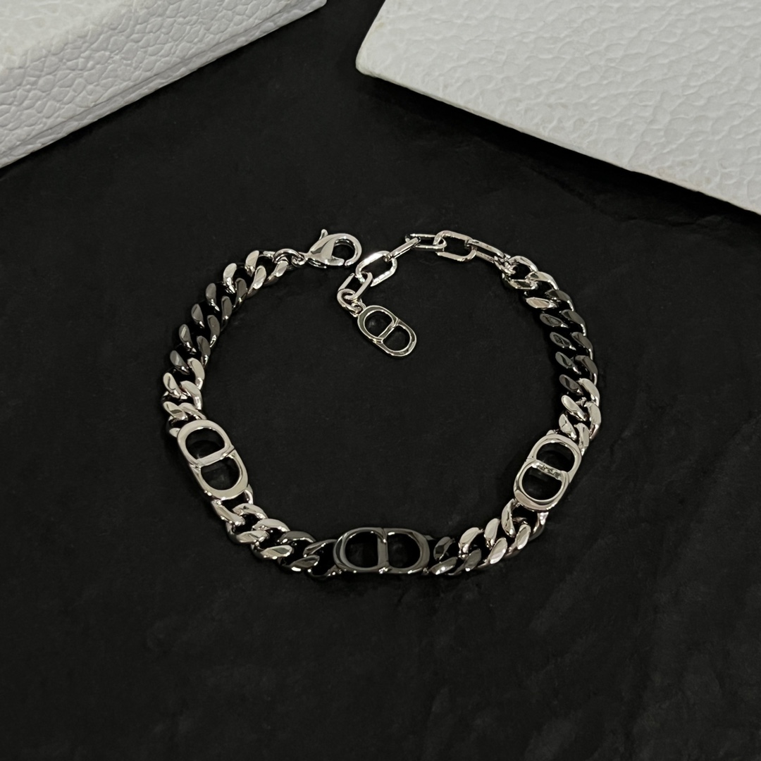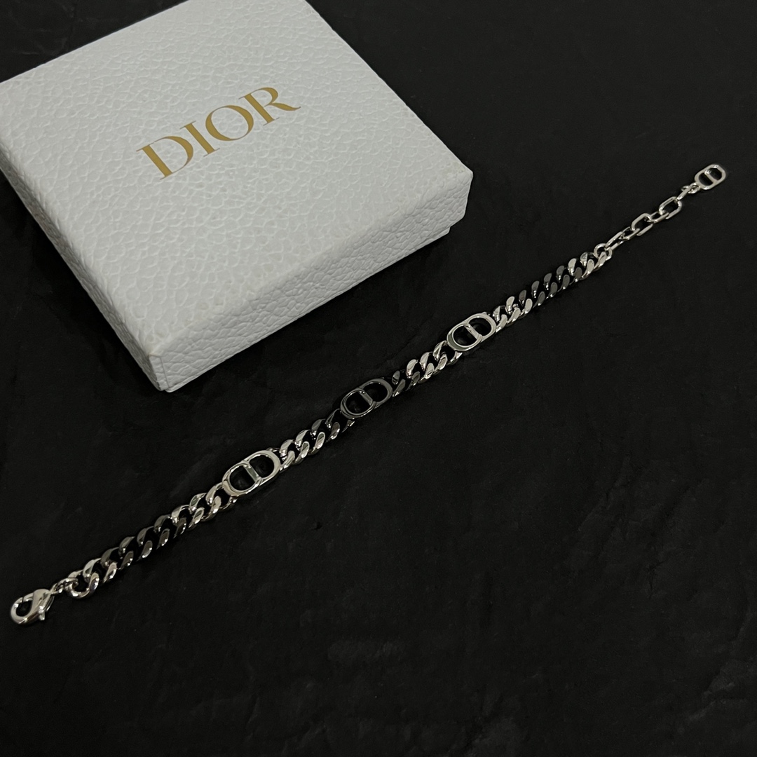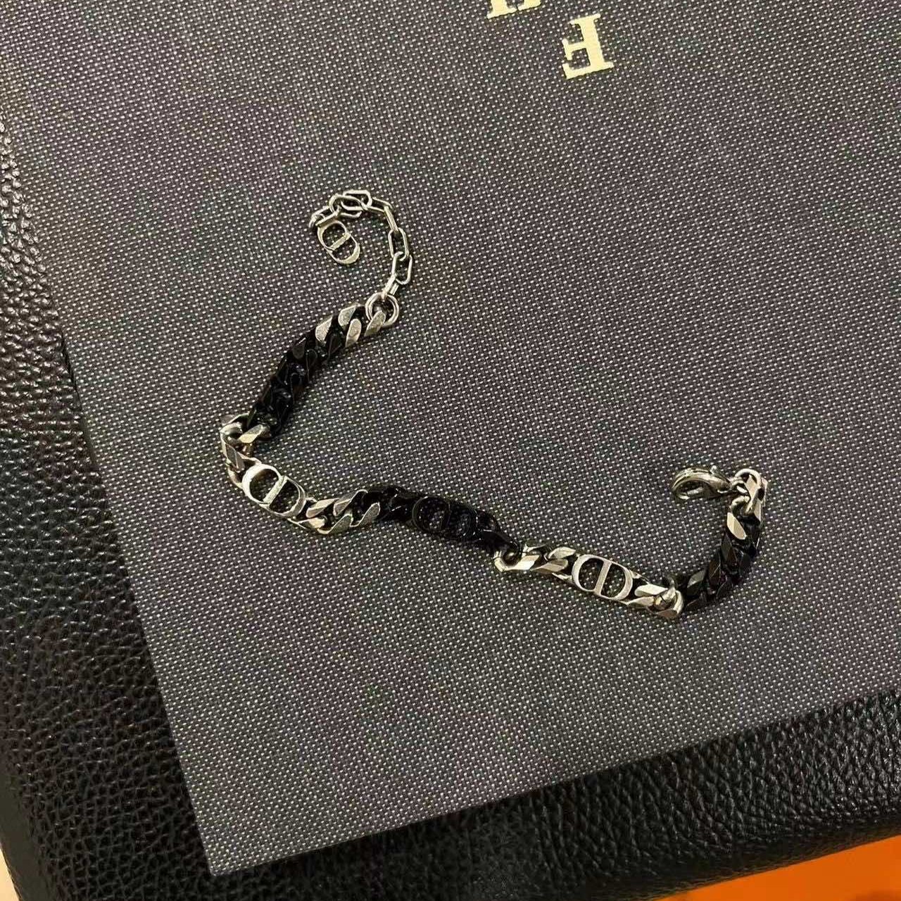 디올 CD 아이콘 실버톤 체인 브레이슬릿
