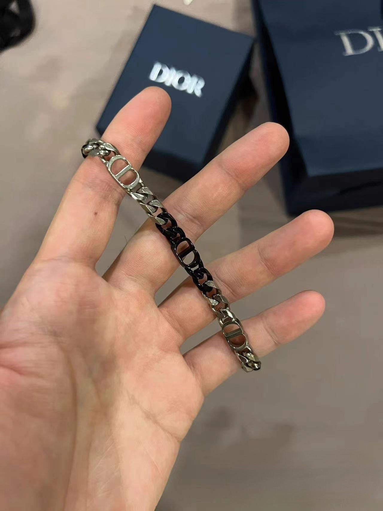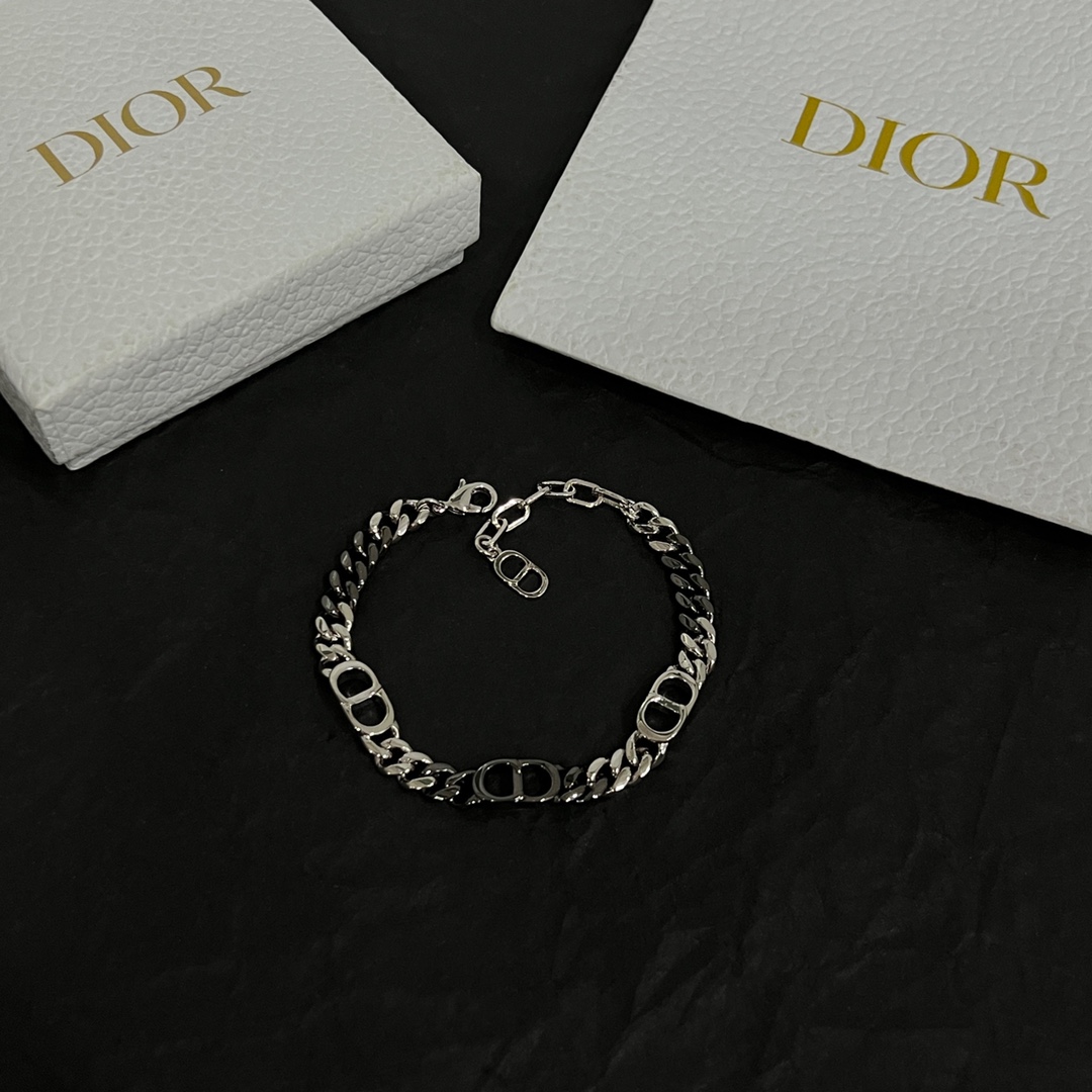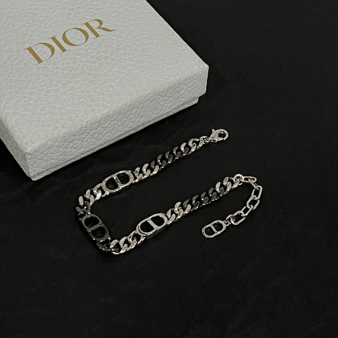 디올 CD 아이콘 실버톤 체인 브레이슬릿
