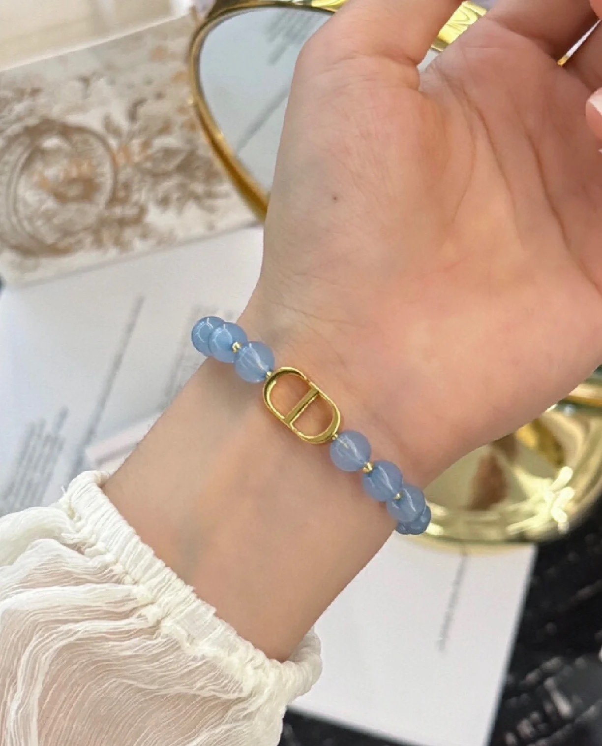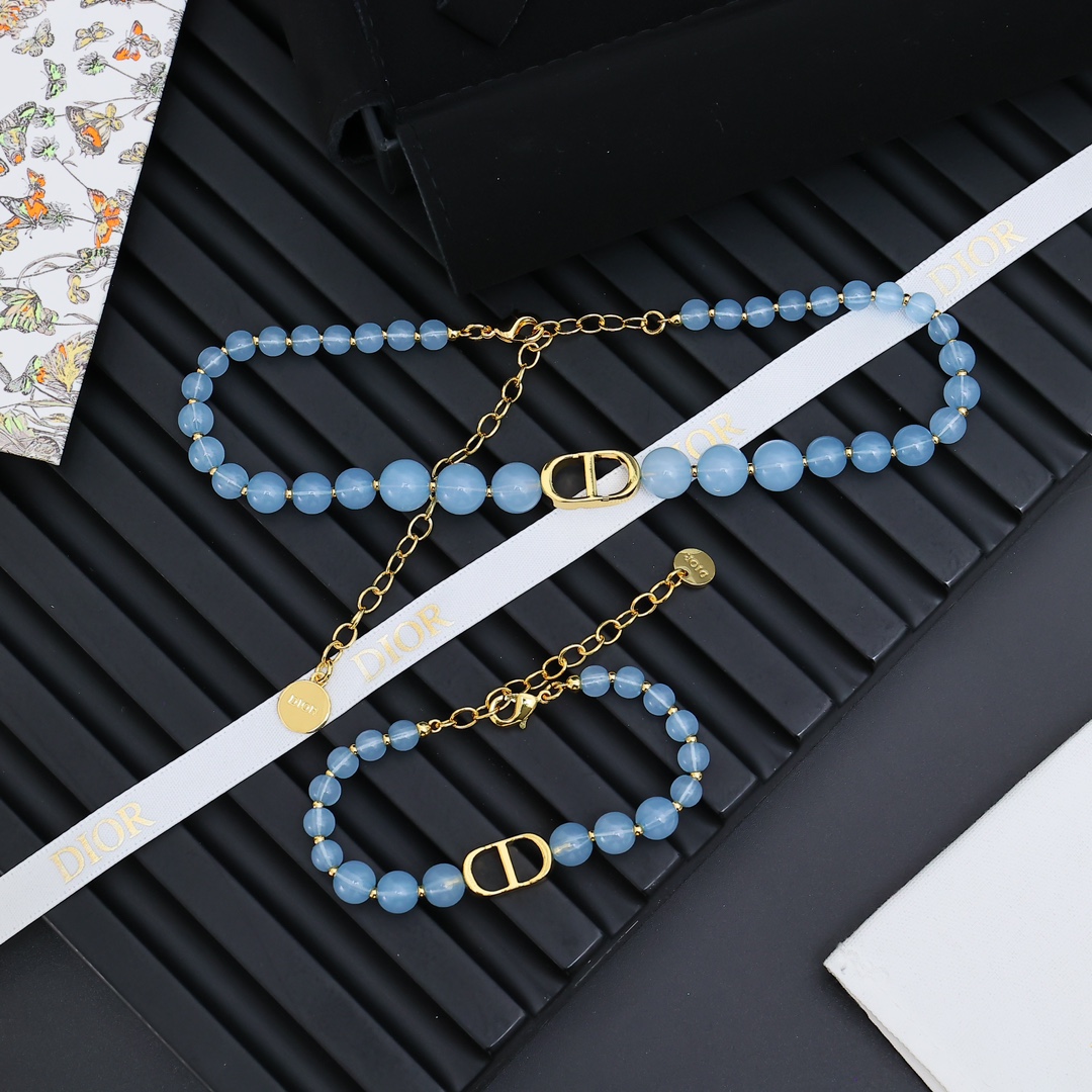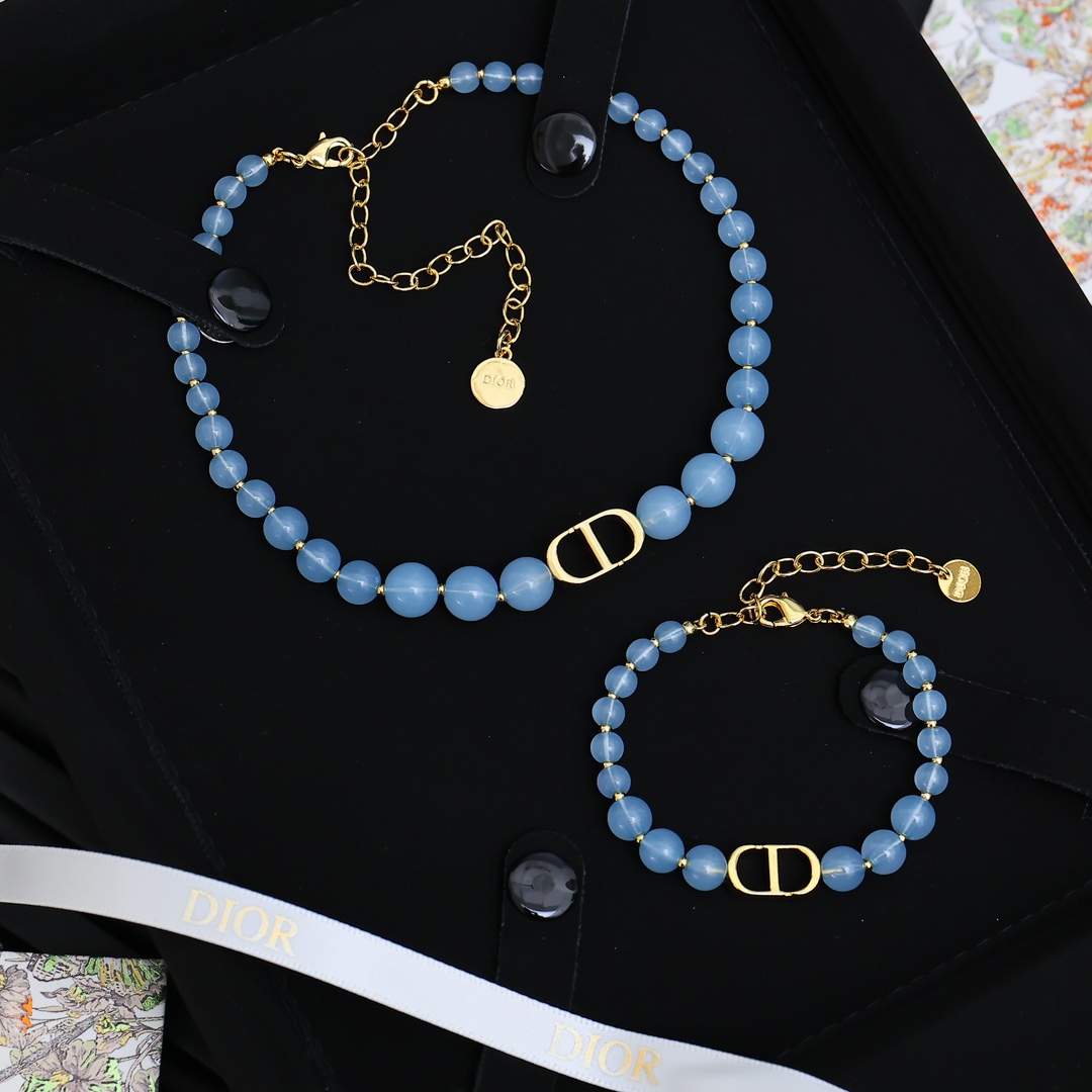 디올 클레어 D 룬 블루 비즈 브레이슬릿