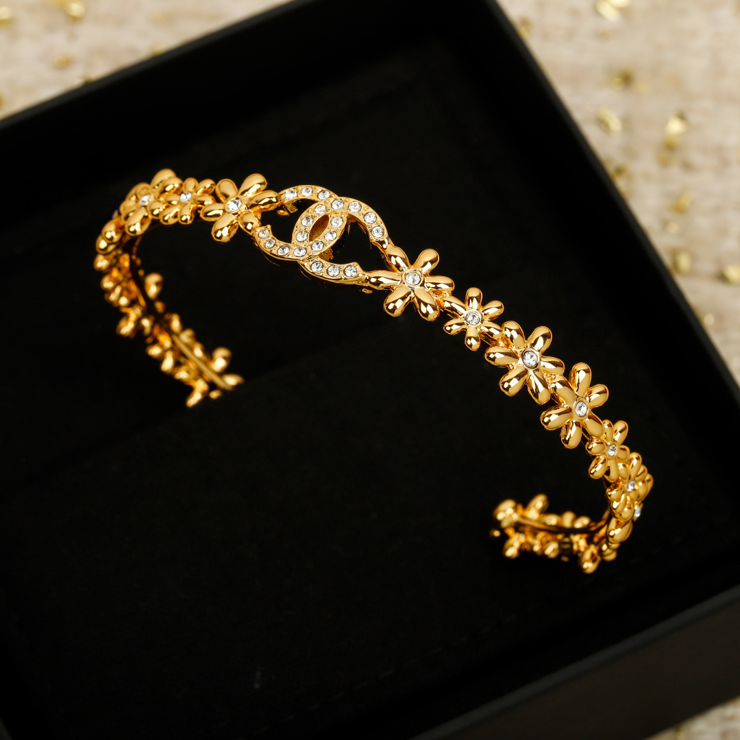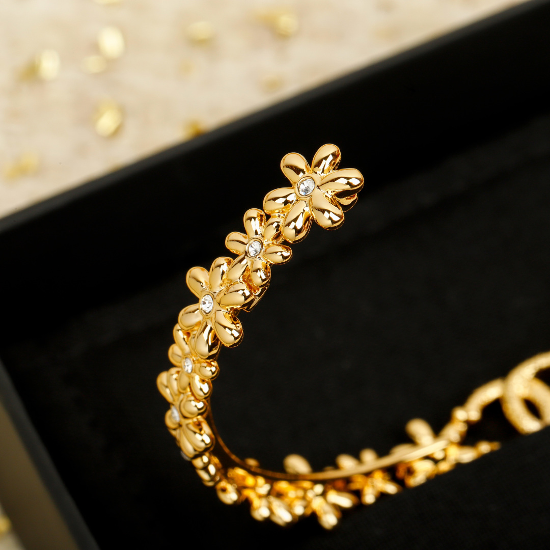 샤넬 CC 골드 플라워 뱅글 브레이슬릿