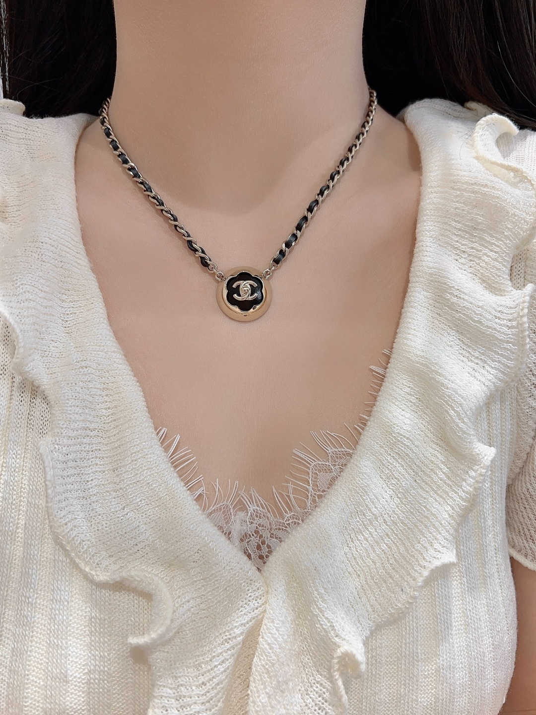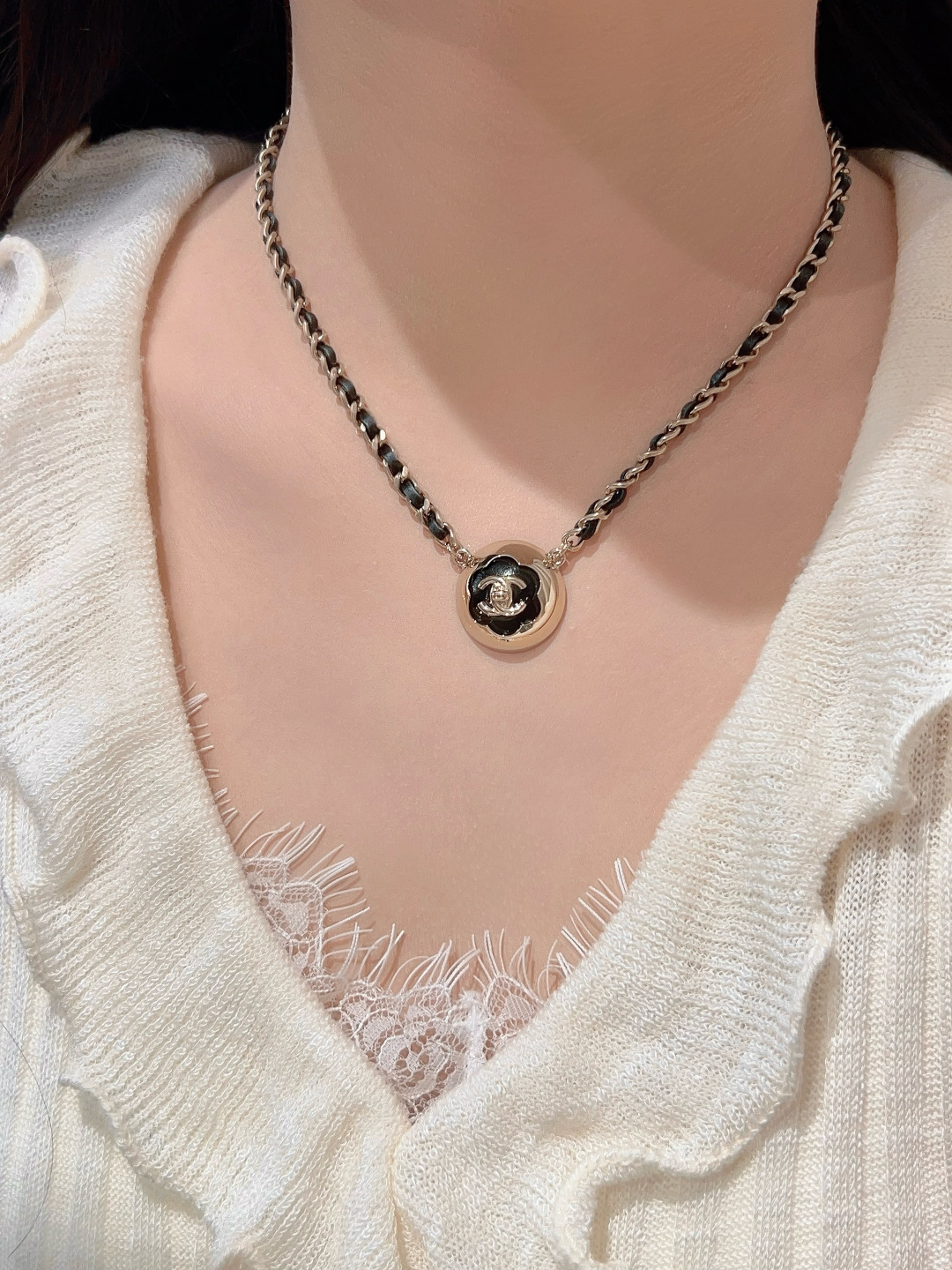 샤넬 CC로고 까멜리아 볼 목걸이