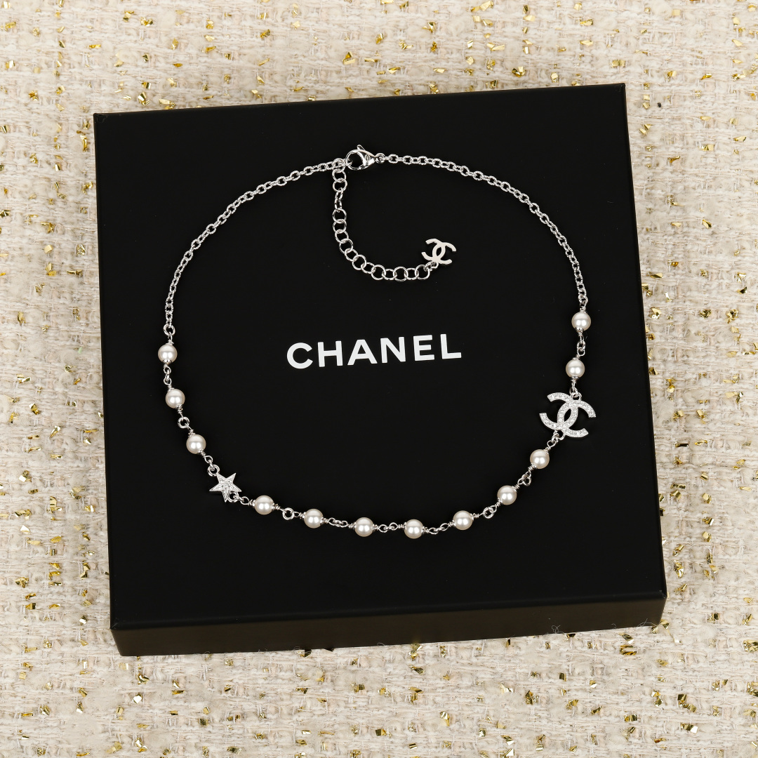 샤넬 CC로고 진주 별 목걸이