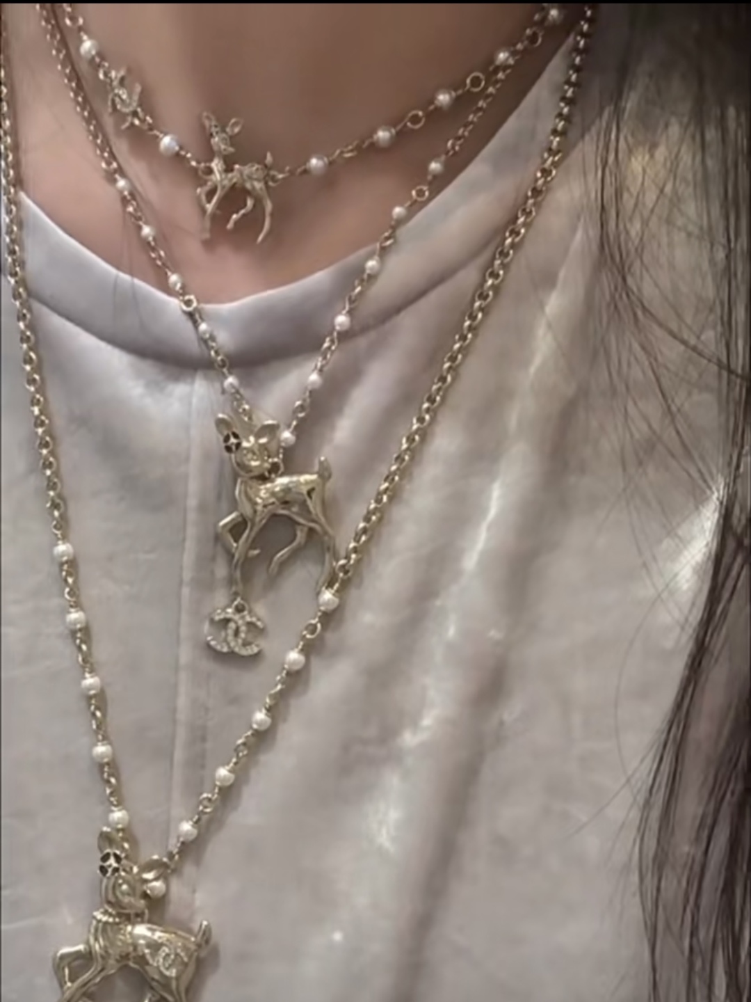 샤넬 CC로고 사슴 진주 목걸이