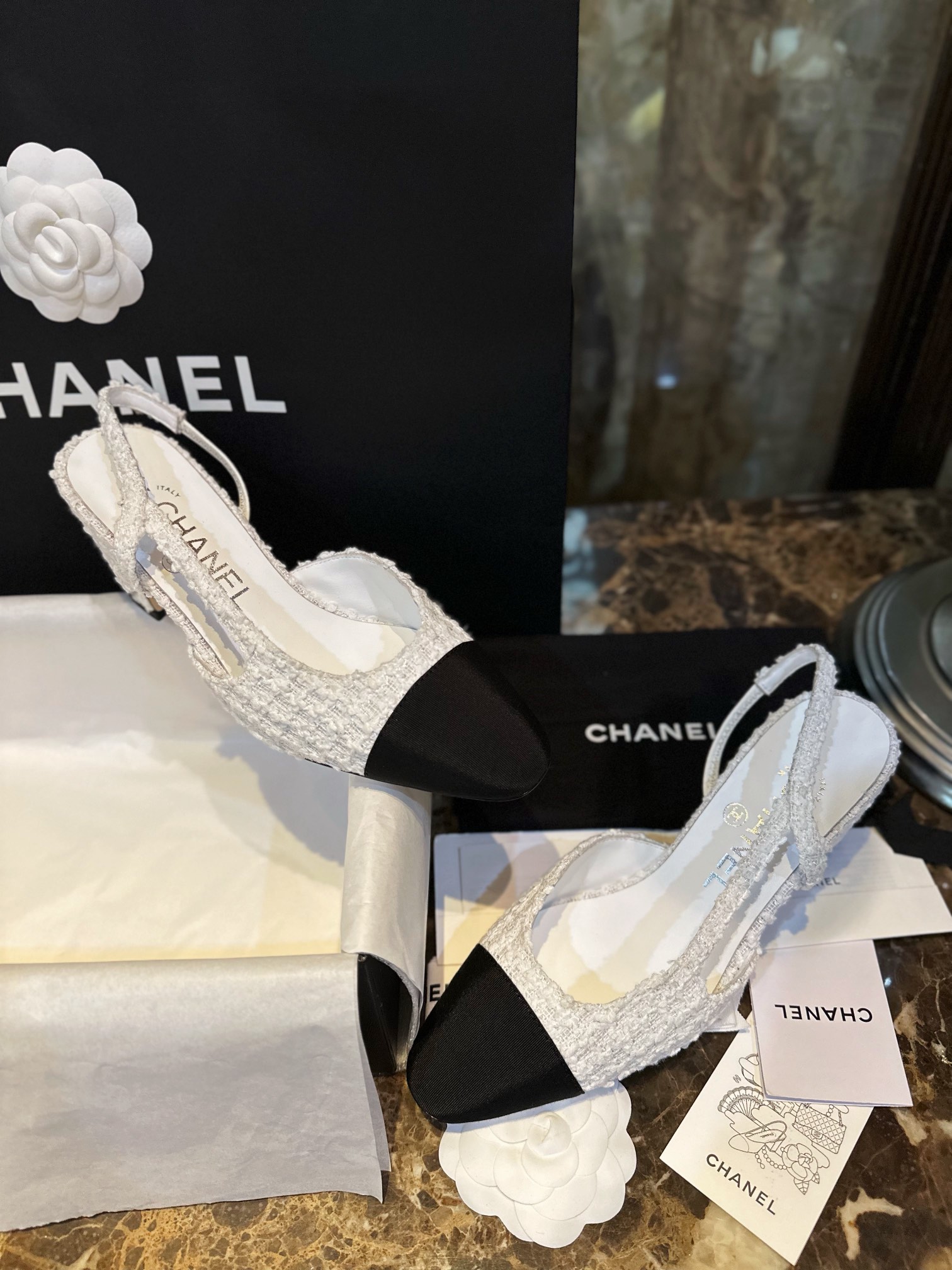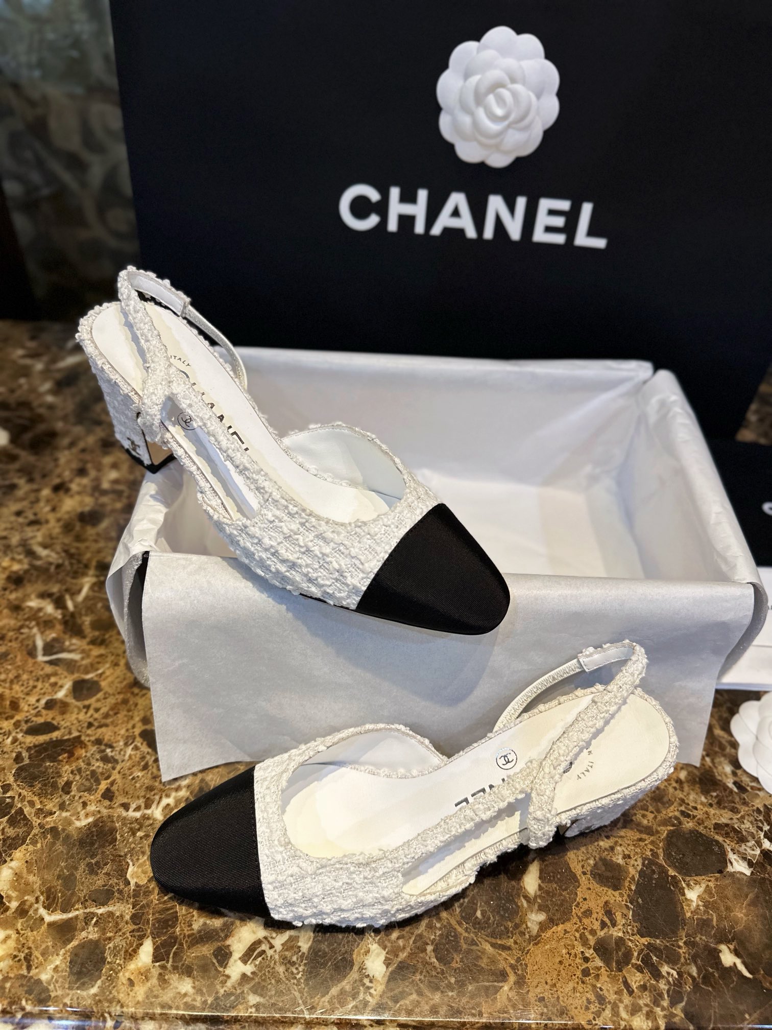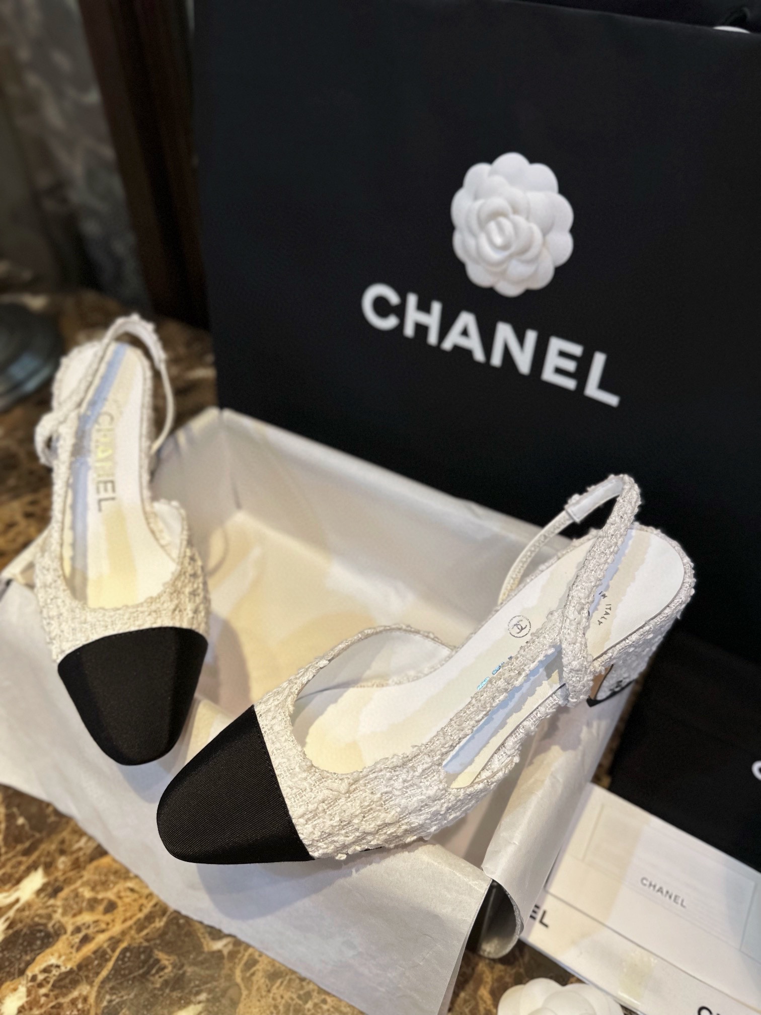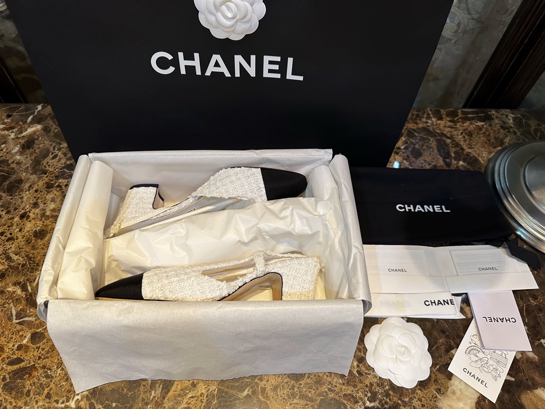 샤넬 트위드 슬링백 펌프스