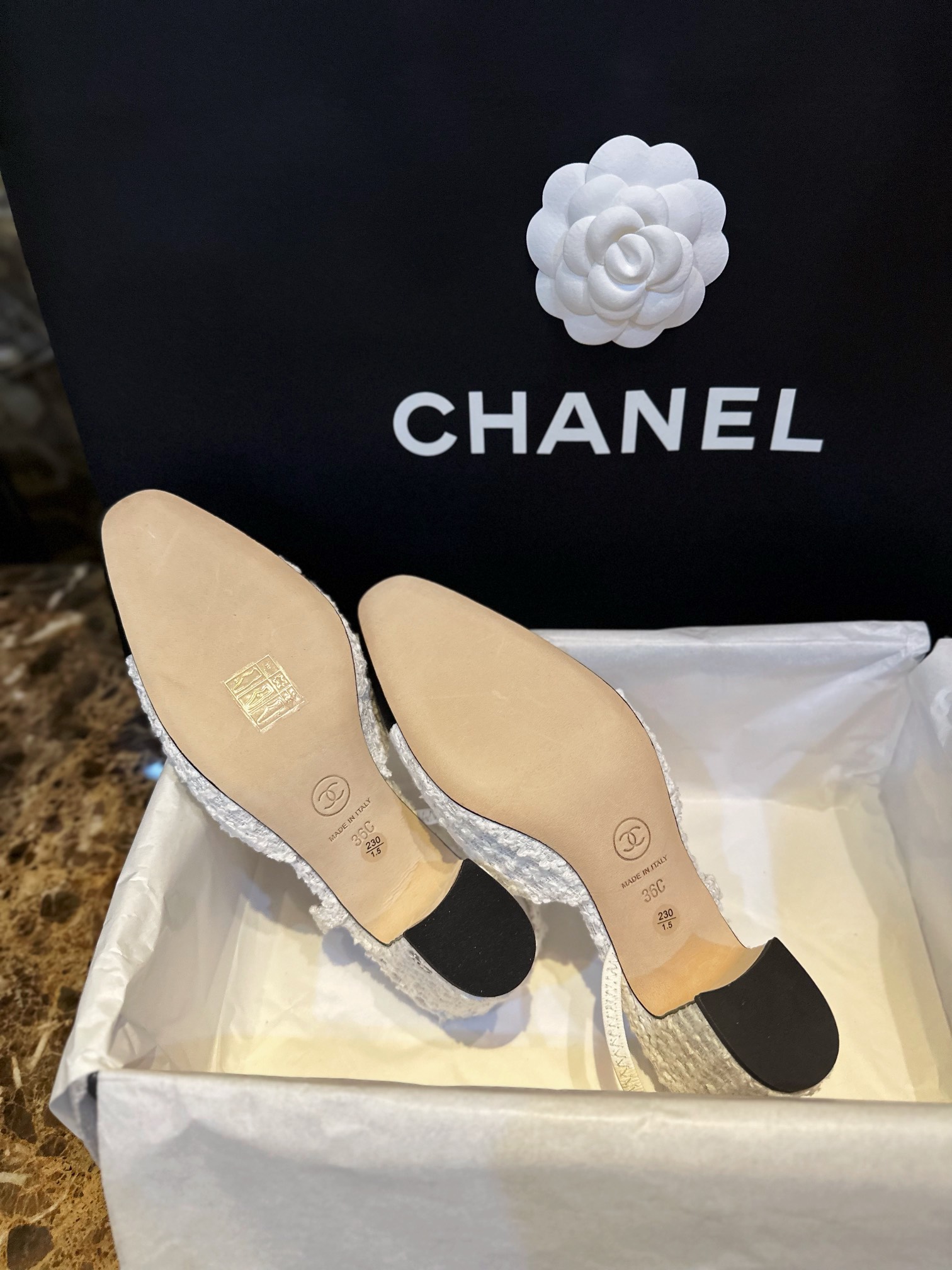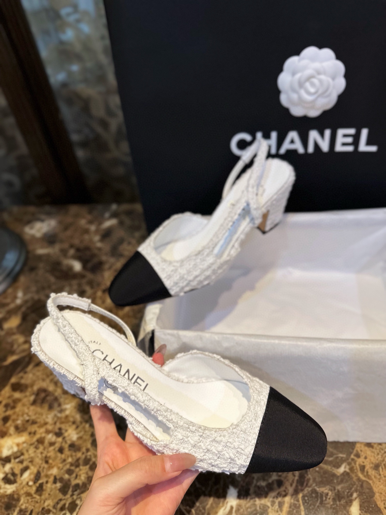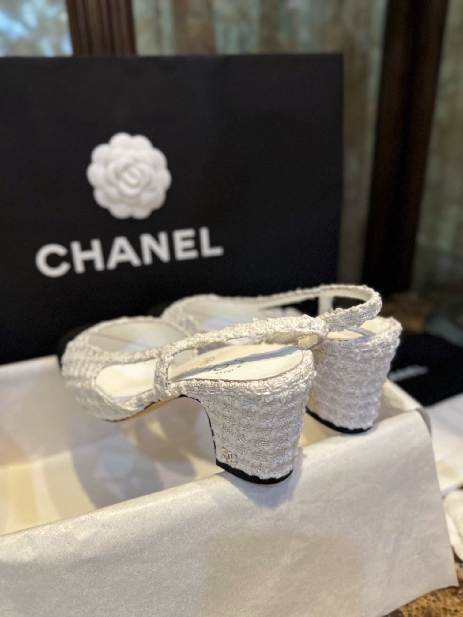 샤넬 트위드 슬링백 펌프스